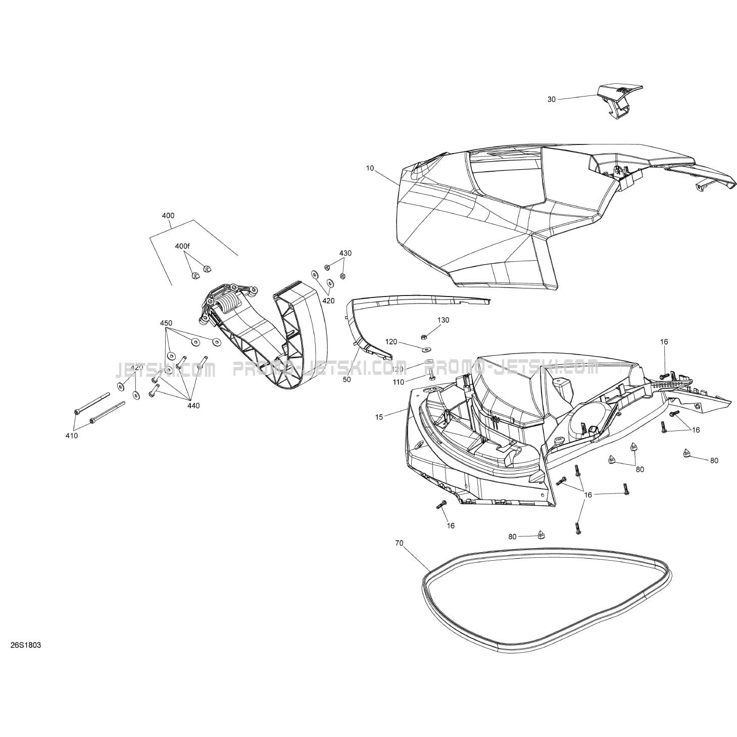 Below, find all references of original and spare parts for Front Cover GTI - 155 for your Sea-Doo GTI 155, 2018 2018 and available at Promo-jetski.com.