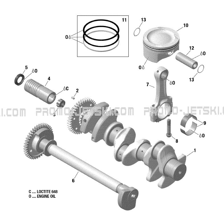 Below, find all references of original and spare parts for Crankshaft, Pistons And Balance Shaft for your Sea-Doo GTI 130, 2018 2018 and available at Promo-jetski.com.