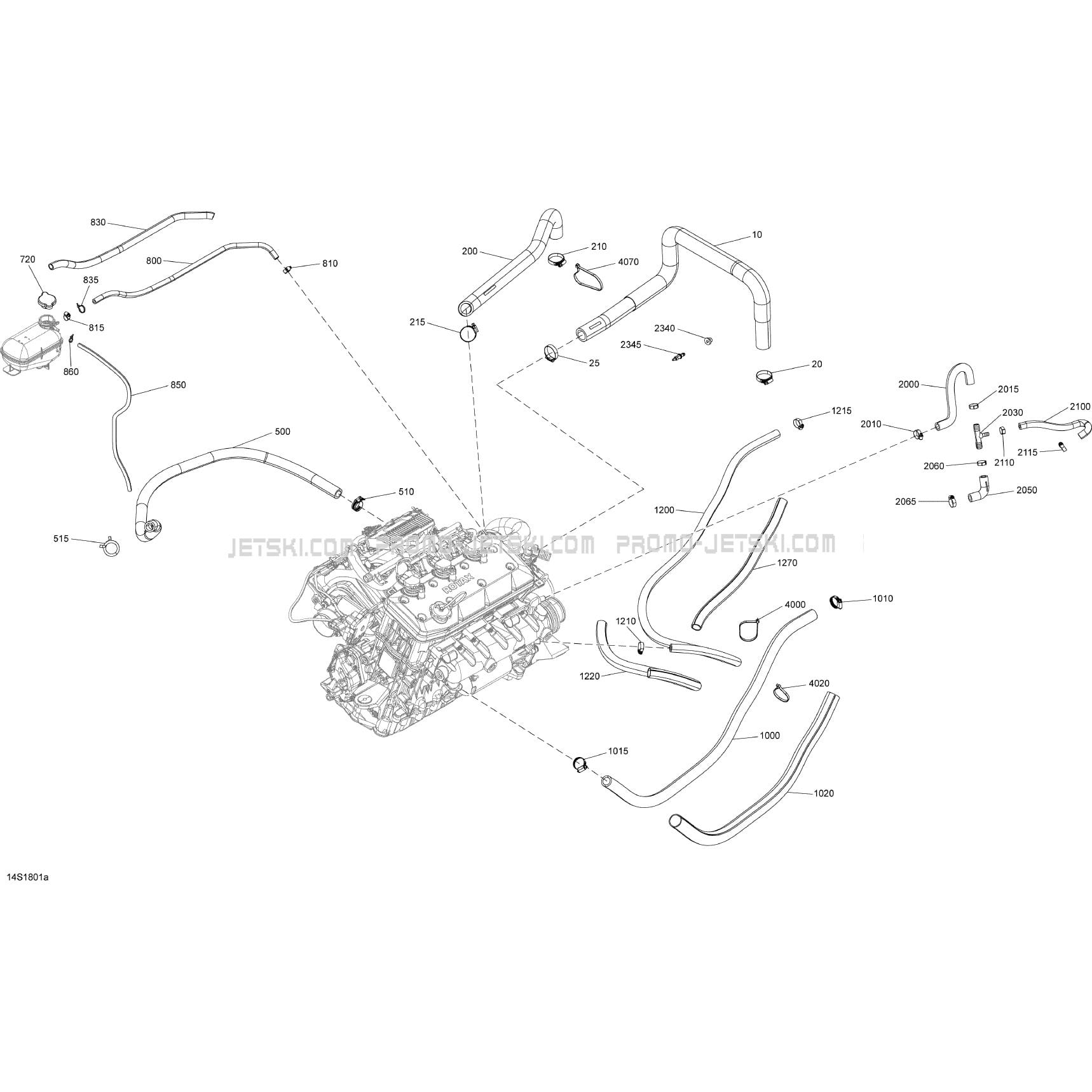 Below, find all references of original and spare parts for Cooling System - Engine 1503 NA for your Sea-Doo GTX 155, 2018 2018 and available at Promo-jetski.com.