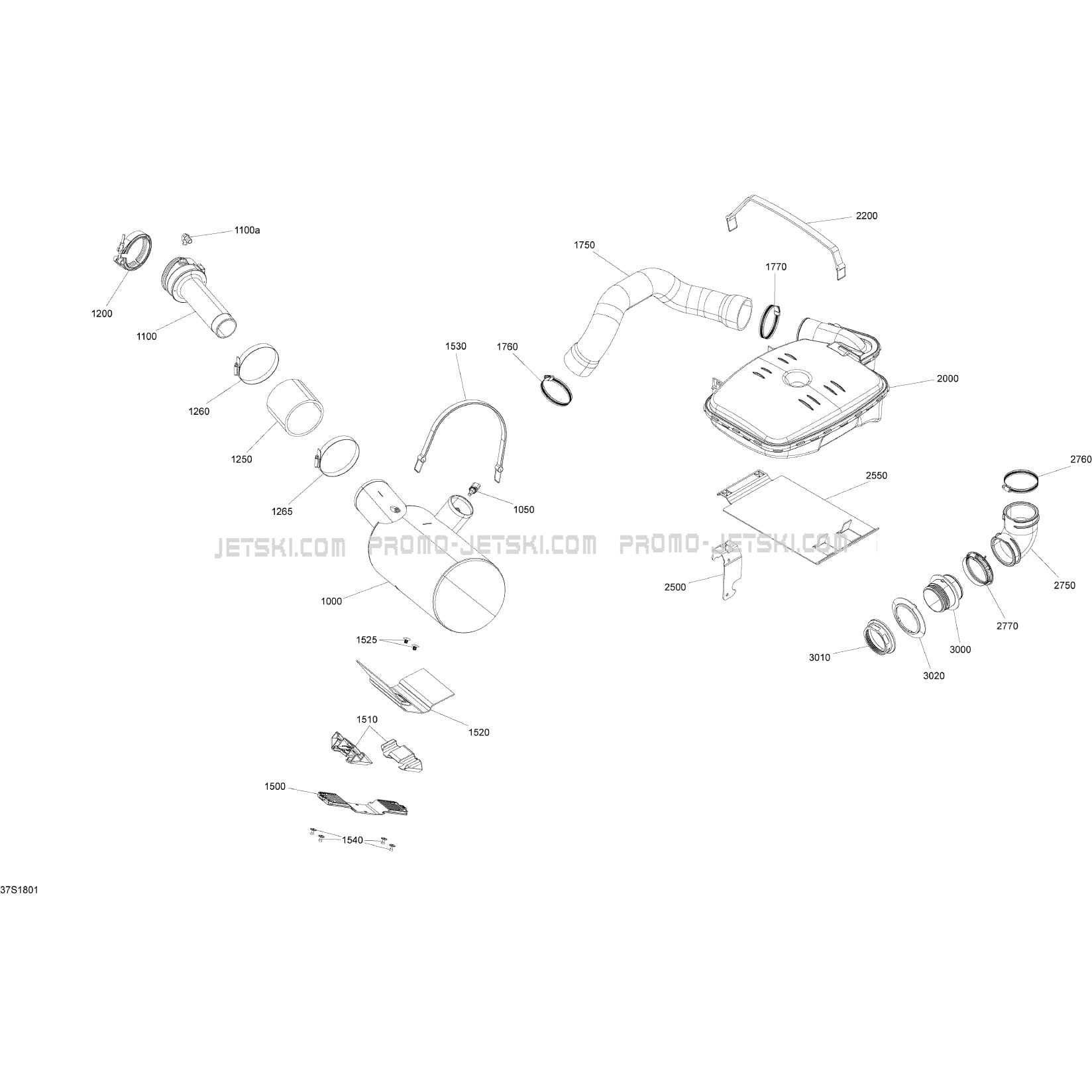 Below, find all references of original and spare parts for Exhaust System - All Models for your Sea-Doo GTX 155, 2018 2018 and available at Promo-jetski.com.