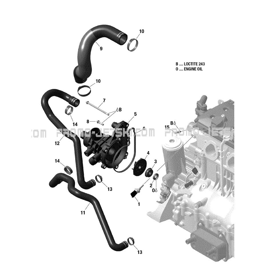 Below, find all references of original and spare parts for Engine Cooling for your Sea-Doo GTX 155, 2018 2018 and available at Promo-jetski.com.