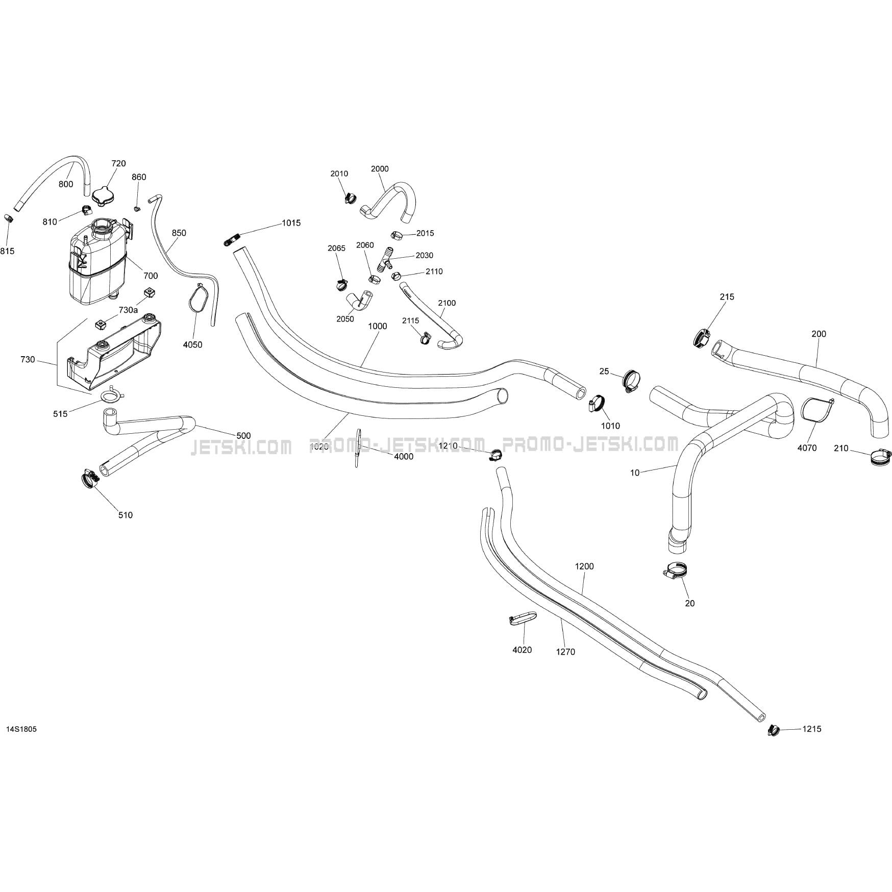 Here is the diagram showing the Cooling Wake - 155 for Sea-Doo WAKE 155, 2018.