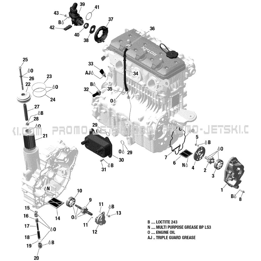 Below, find all references of original and spare parts for Engine Lubrication for your Sea-Doo WAKE 155, 2018 2018 and available at Promo-jetski.com.