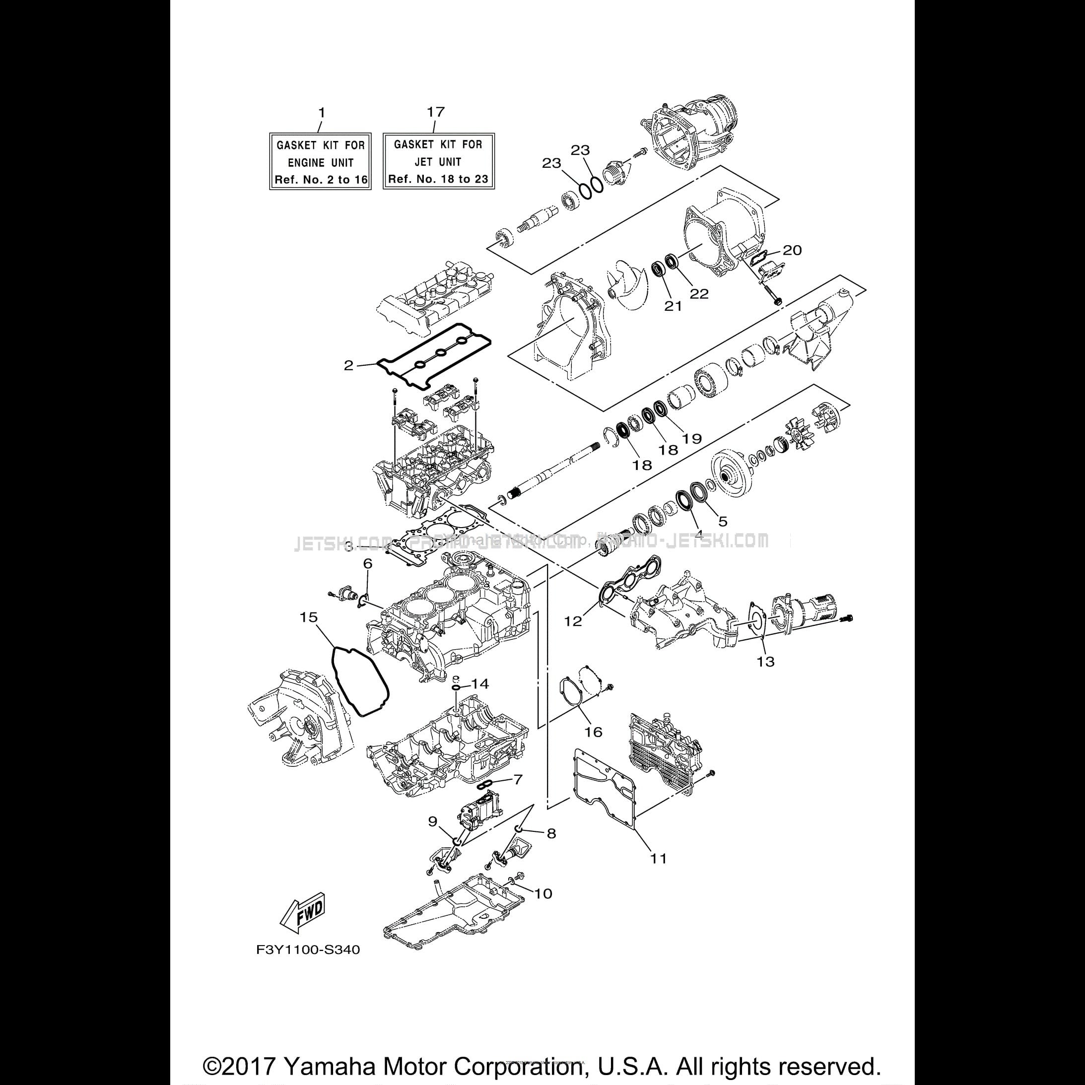 Below, find all references of original and spare parts for REPAIR KIT 1 for your Yamaha EX DELUXE - EX1050AS - 2017 2017 WaveRunner and available at Promo-jetski.com.