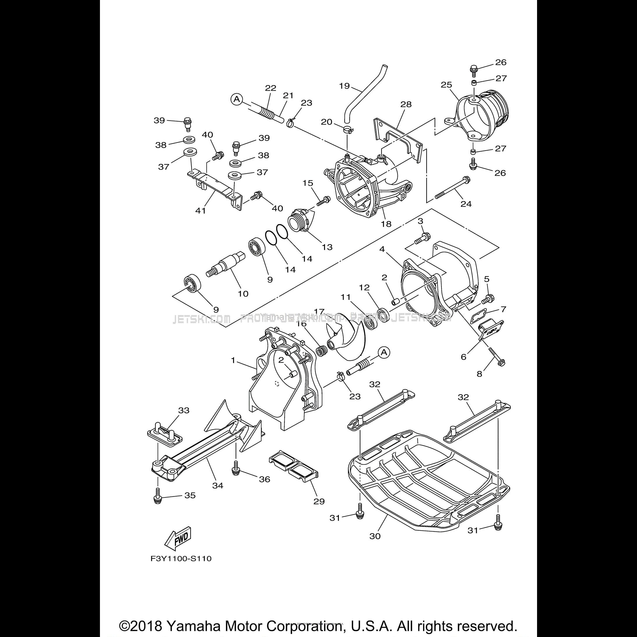 Below, find all references of original and spare parts for JET UNIT 1 for your Yamaha EX DELUXE - EX1050AT - 2018 2018 WaveRunner and available at Promo-jetski.com.
