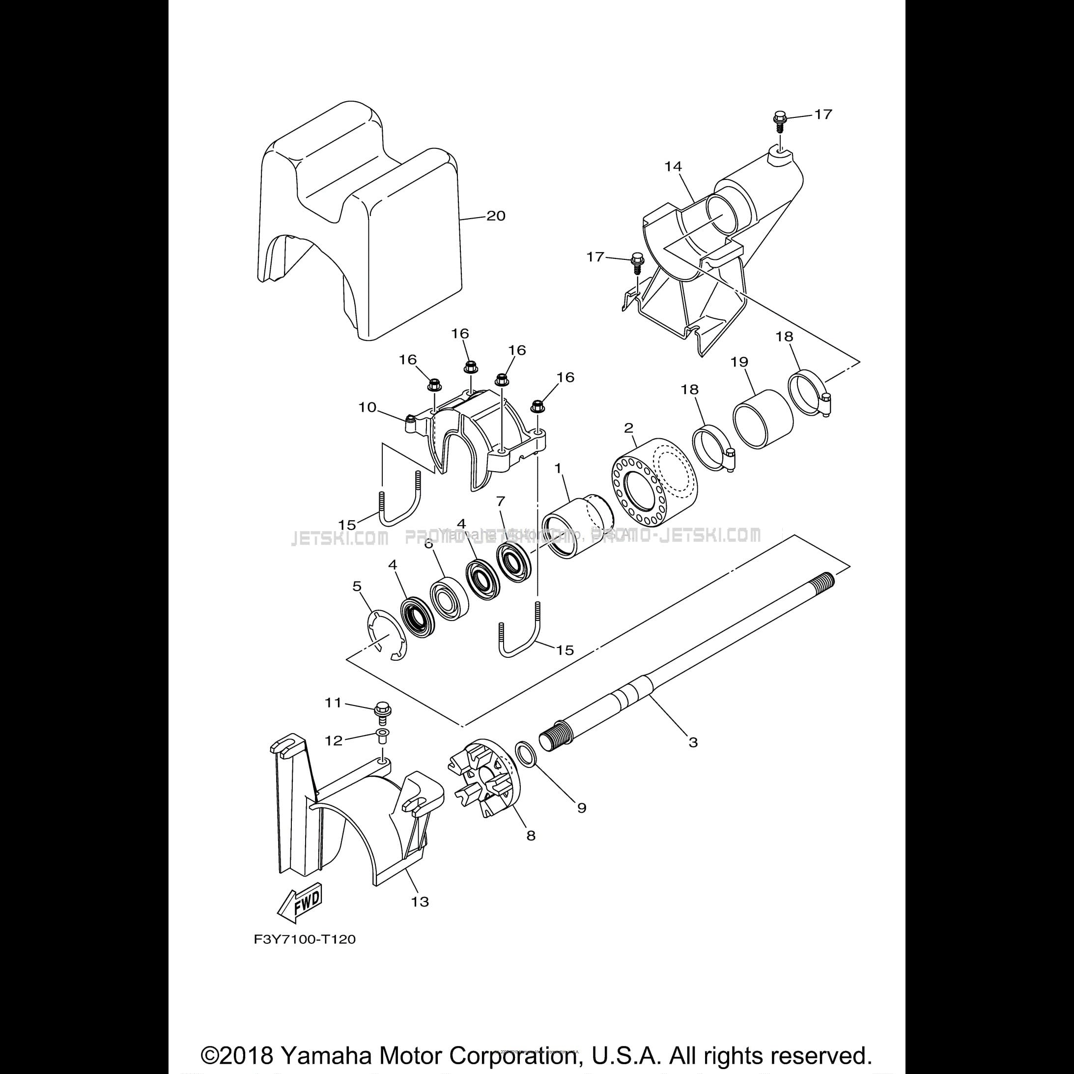 Below, find all references of original and spare parts for JET UNIT 2 for your Yamaha EX SPORT - EX1050BT - 2018 2018 WaveRunner and available at Promo-jetski.com.