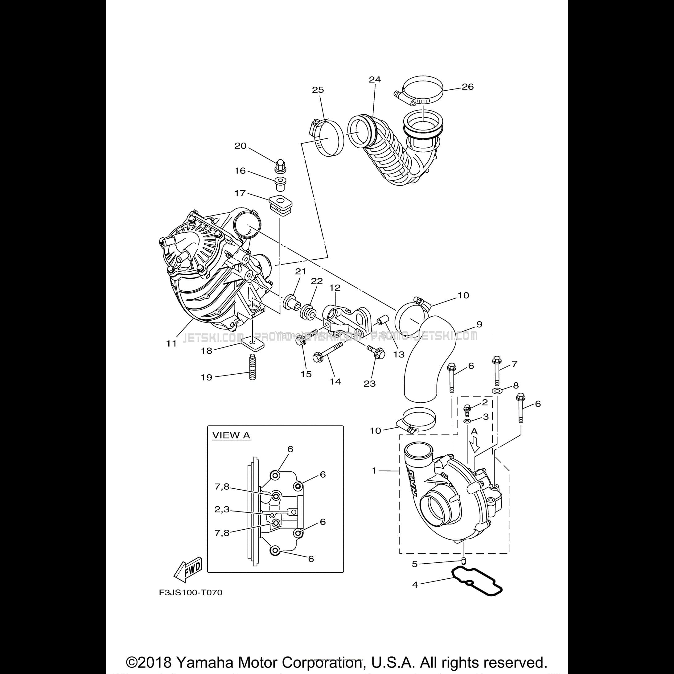 Below, find all references of original and spare parts for INTAKE 2 for your Yamaha FX LIMITED SVHO - FC1800BT - 2018 2018 WaveRunner and available at Promo-jetski.com.