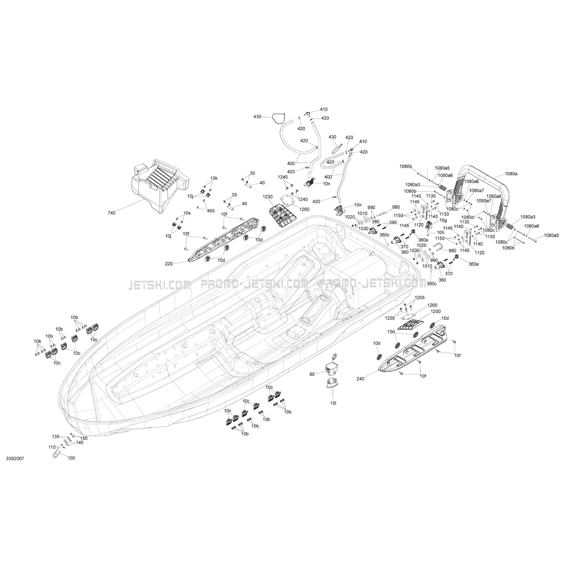 Below, find all references of original and spare parts for 09- Hull for your Sea-Doo 002 - GTX 230, 2020 2020 and available at Promo-jetski.com.