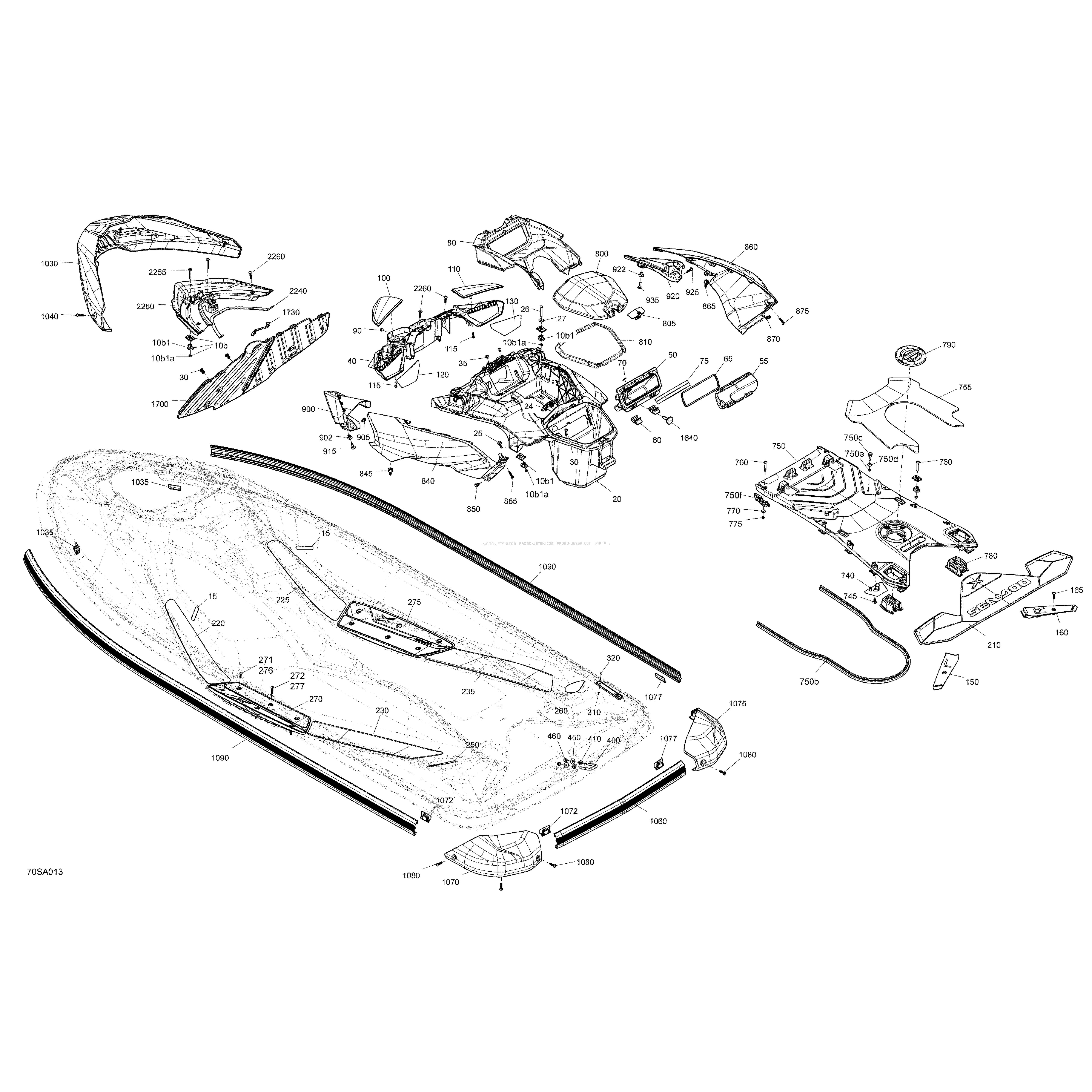 Below, find all references of original and spare parts for Carrosserie - Système for your Sea-Doo RXP XRS 300 2021 and available at Promo-jetski.com.