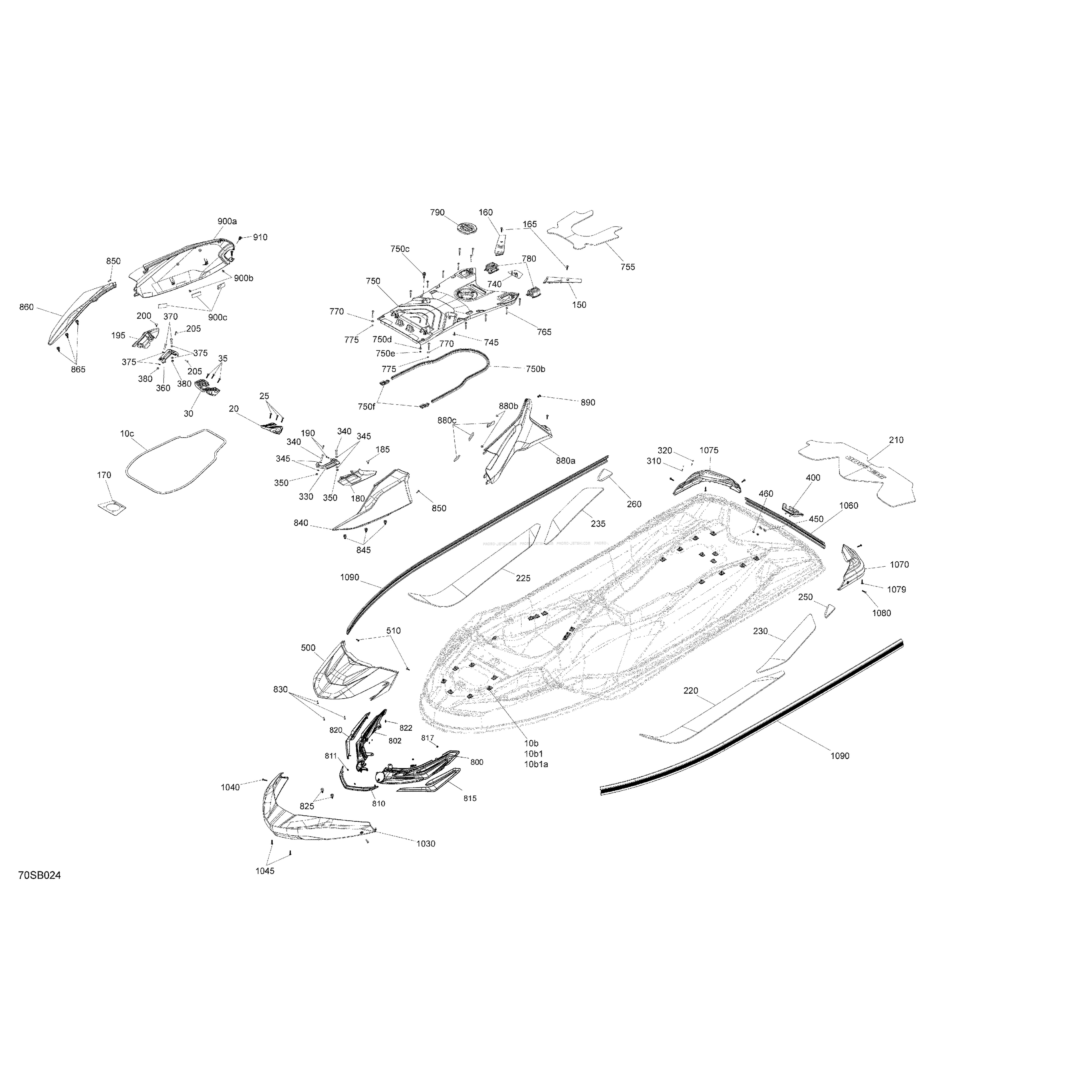 Below, find all references of original and spare parts for Carrosserie - Système for your Sea-Doo WAKE PRO 230 2022 and available at Promo-jetski.com.