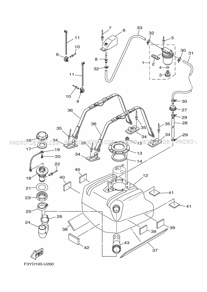 Below, find all references of original and spare parts for FUEL TANK for your Yamaha ER1050 2021 and available at Promo-jetski.com.