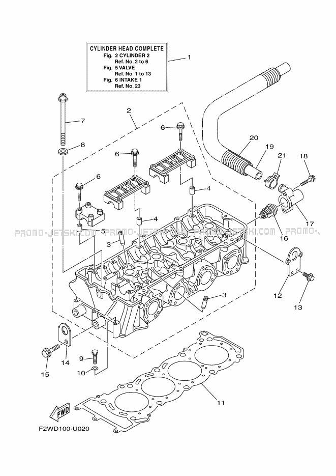 Below, find all references of original and spare parts for CYLINDER 2 for your Yamaha GP1800B-W 2021 and available at Promo-jetski.com.