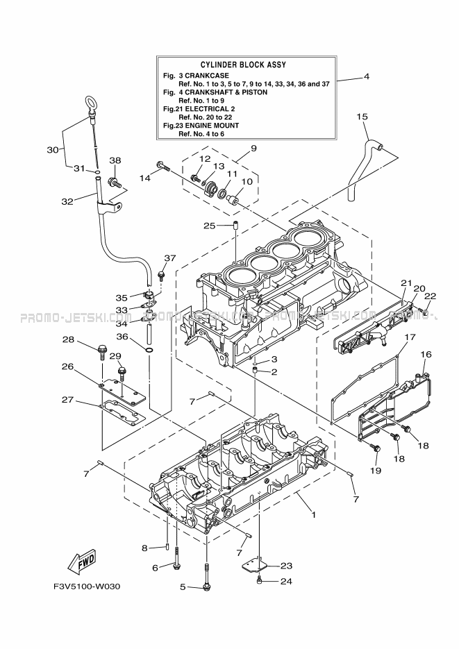 Below, find all references of original and spare parts for CRANKCASE for your Yamaha GP1800B-W 2021 and available at Promo-jetski.com.