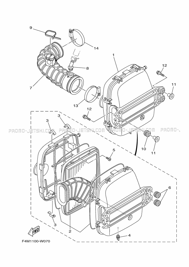 Below, find all references of original and spare parts for INTAKE 2 for your Yamaha GP1800B-W 2021 and available at Promo-jetski.com.