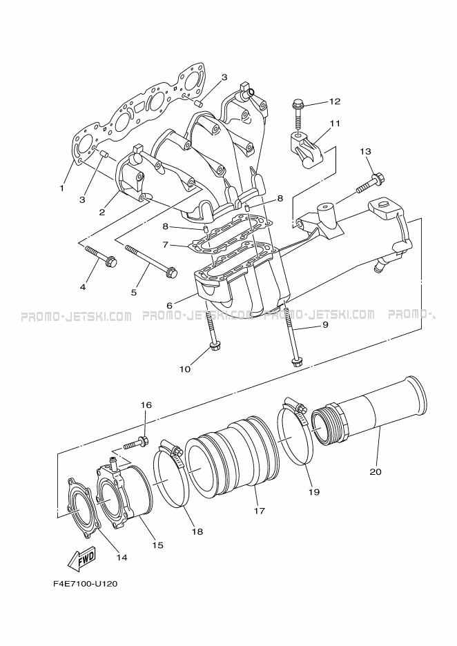 Below, find all references of original and spare parts for EXHAUST 1 for your Yamaha GP1800B-W 2021 and available at Promo-jetski.com.