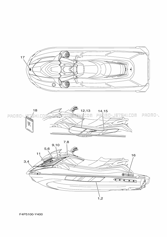 Below, find all references of original and spare parts for GRAPHICS for your Yamaha GP1800C 2023 and available at Promo-jetski.com.