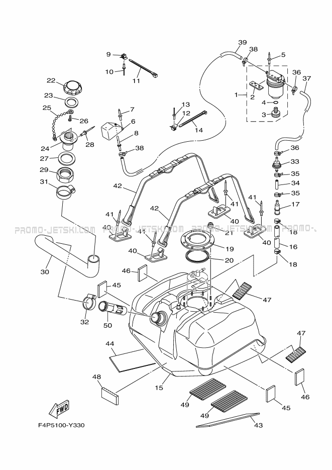 Below, find all references of original and spare parts for FUEL TANK for your Yamaha VX1050F 2024 and available at Promo-jetski.com.