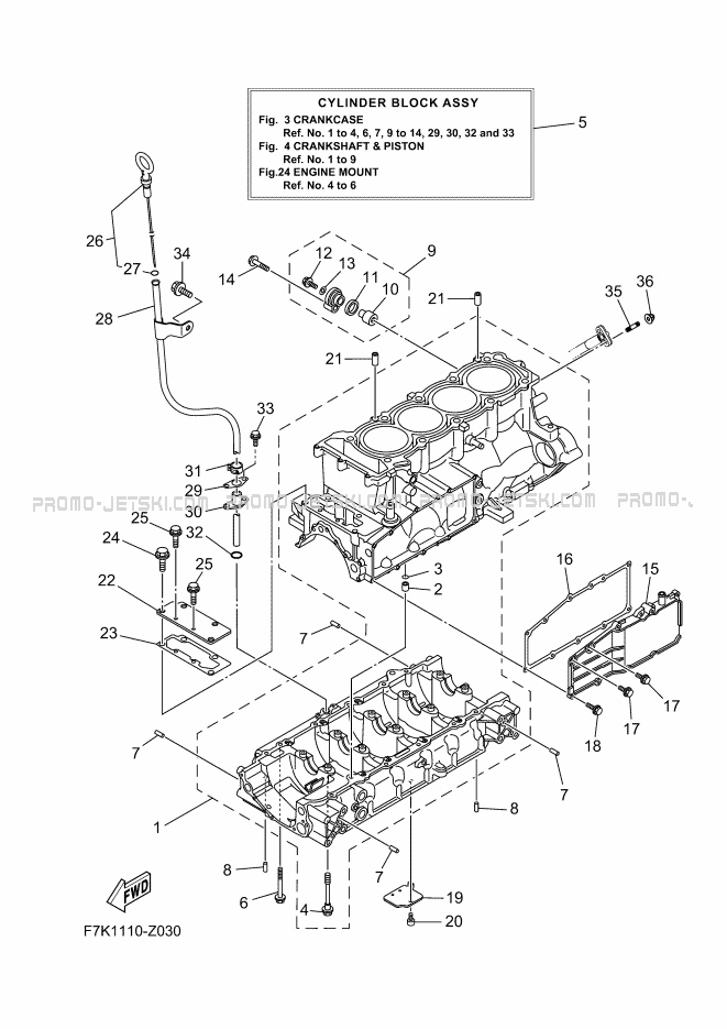 Below, find all references of original and spare parts for CRANKCASE for your Yamaha FX1900C 2024 and available at Promo-jetski.com.