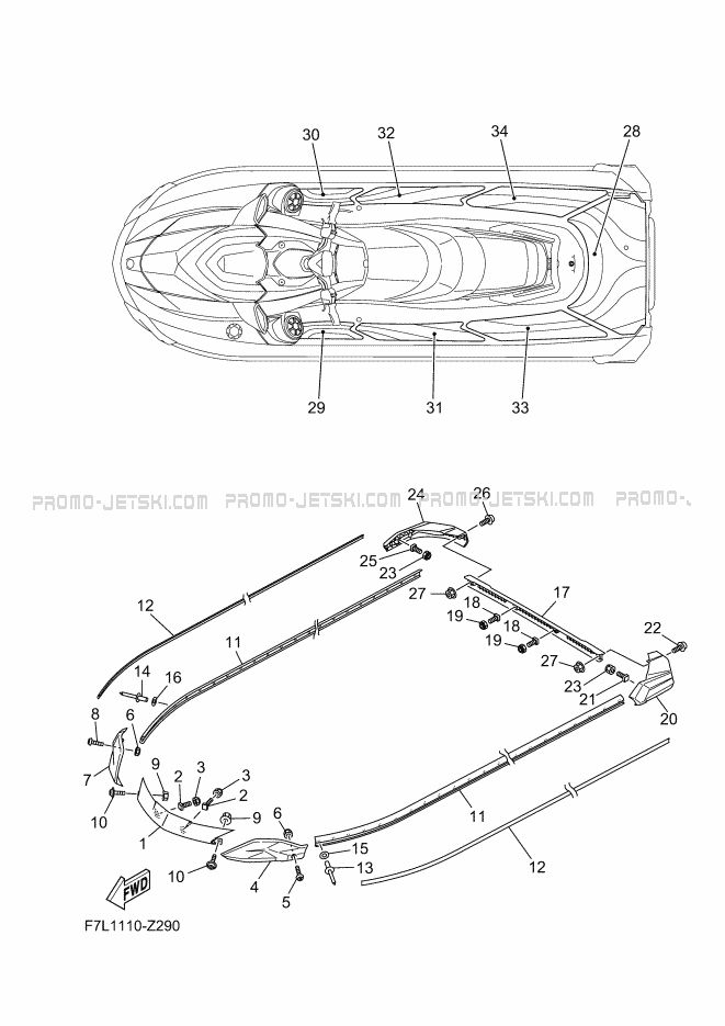 Below, find all references of original and spare parts for GUNWALE & MAT for your Yamaha GP1900B-A 2024 and available at Promo-jetski.com.