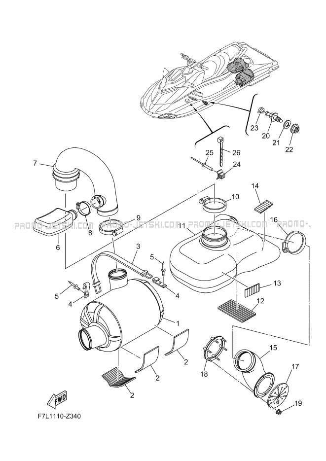 Below, find all references of original and spare parts for EXHAUST 3 for your Yamaha GP1900B-A 2024 and available at Promo-jetski.com.