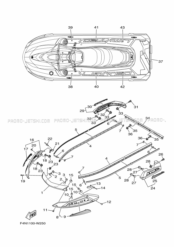 Below, find all references of original and spare parts for GUNWALE & MAT for your Yamaha VX1900A-A 2024 and available at Promo-jetski.com.