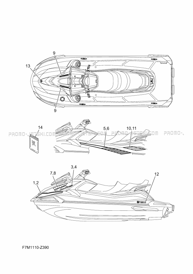 Below, find all references of original and spare parts for GRAPHICS for your Yamaha VX1900A-A 2024 and available at Promo-jetski.com.