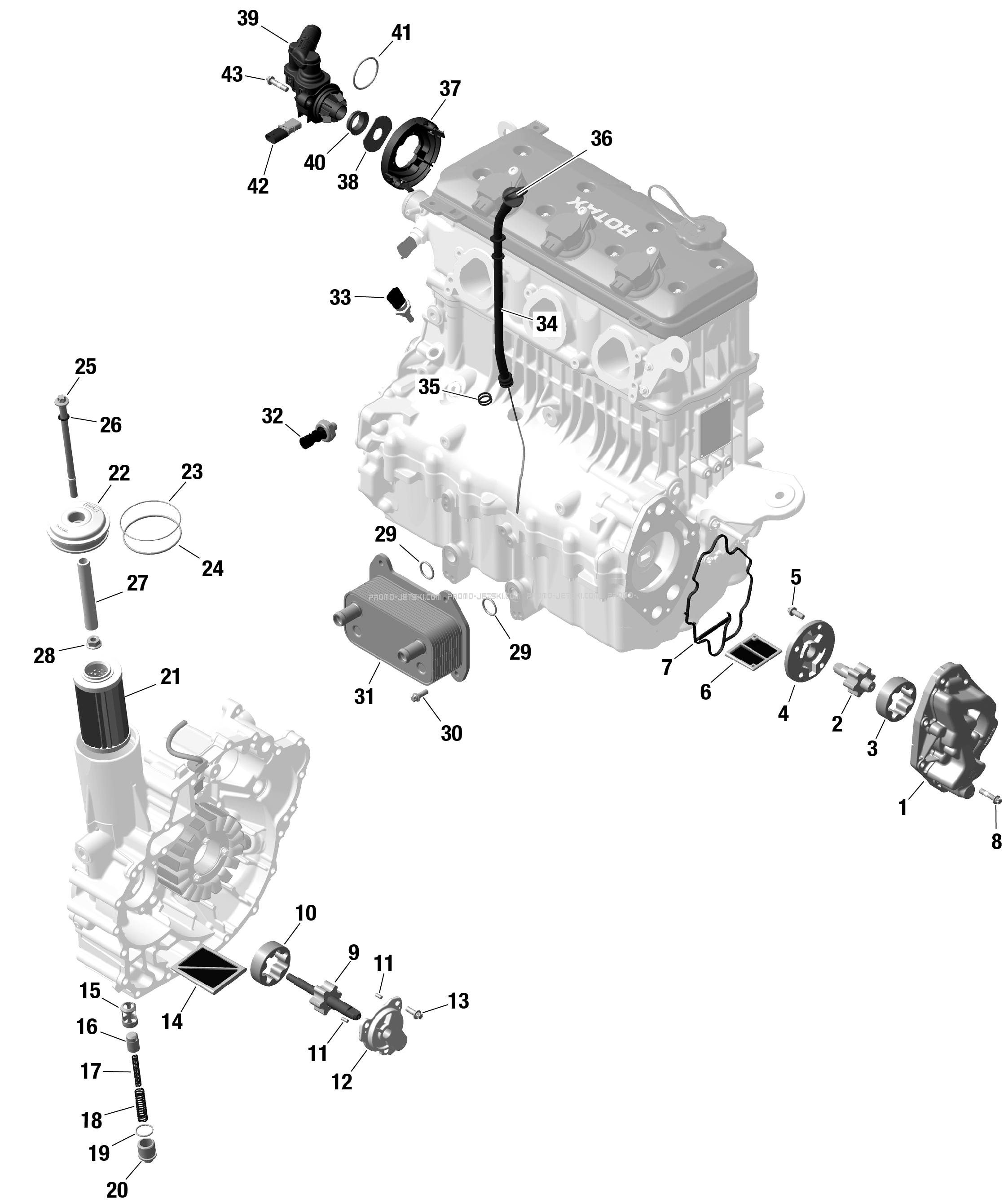 Below, find all references of original and spare parts for ROTAX - Engine Lubrication for your Sea-Doo GTR 230 - 36RB - STD package - Eclipse Black 2024 and available at Promo-jetski.com.