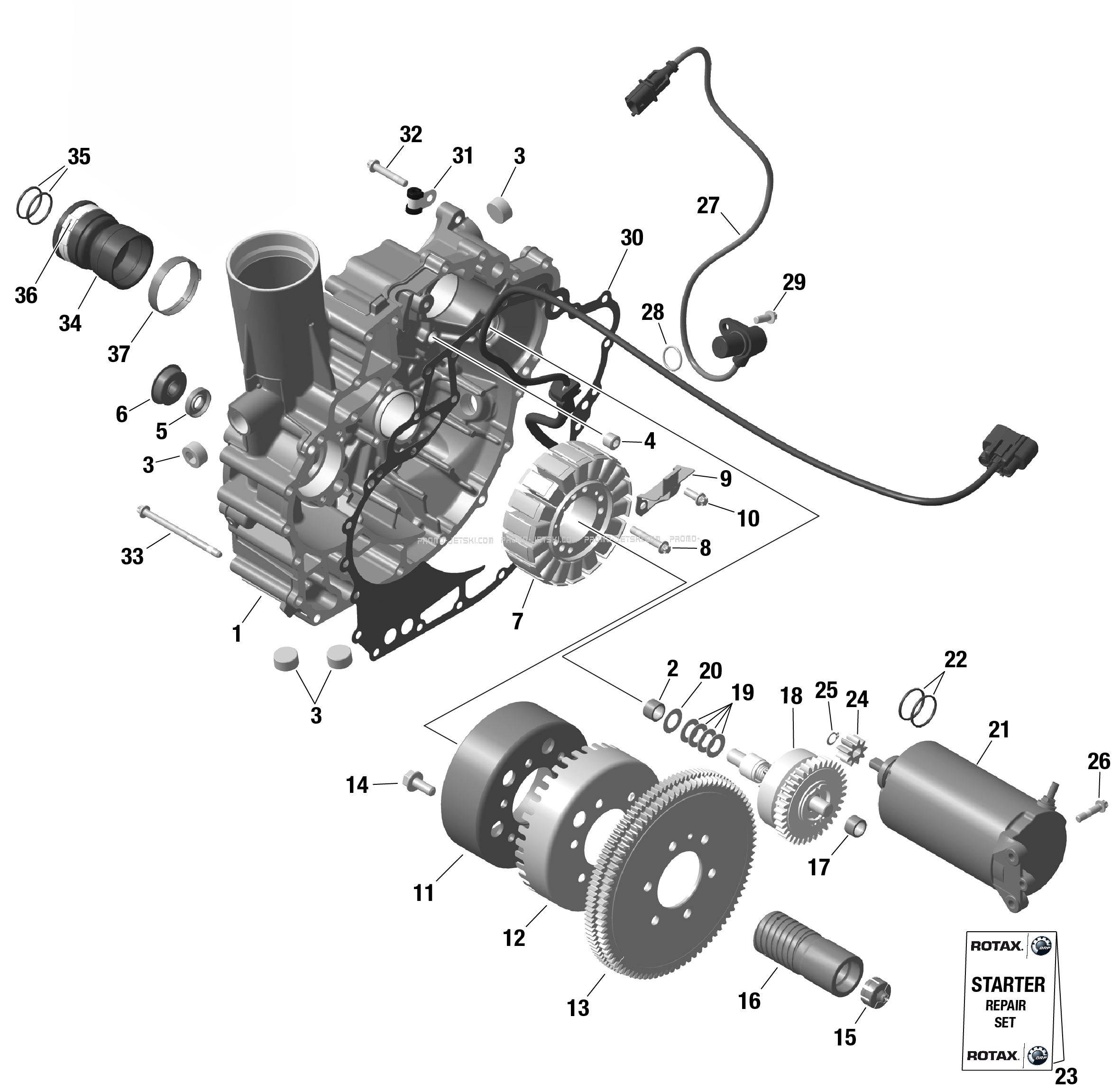 Below, find all references of original and spare parts for ROTAX - Magneto and Electric Starter for your Sea-Doo GTR 230 - 36RD - STD package - Eclipse Black - Audio 2024 and available at Promo-jetski.com.