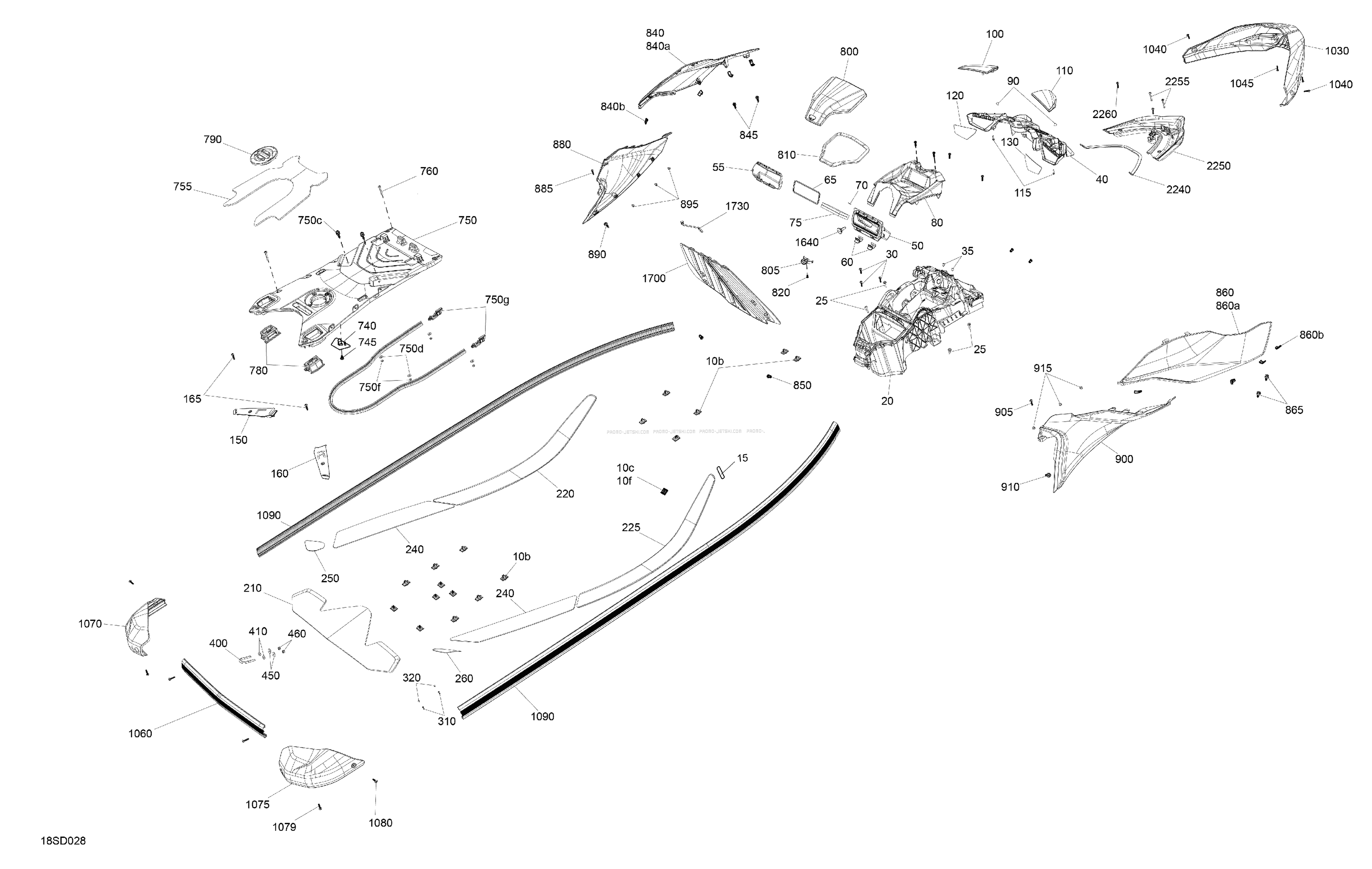 Below, find all references of original and spare parts for Body - System for your Sea-Doo GTR 230 - 36RD - STD package - Eclipse Black - Audio 2024 and available at Promo-jetski.com.
