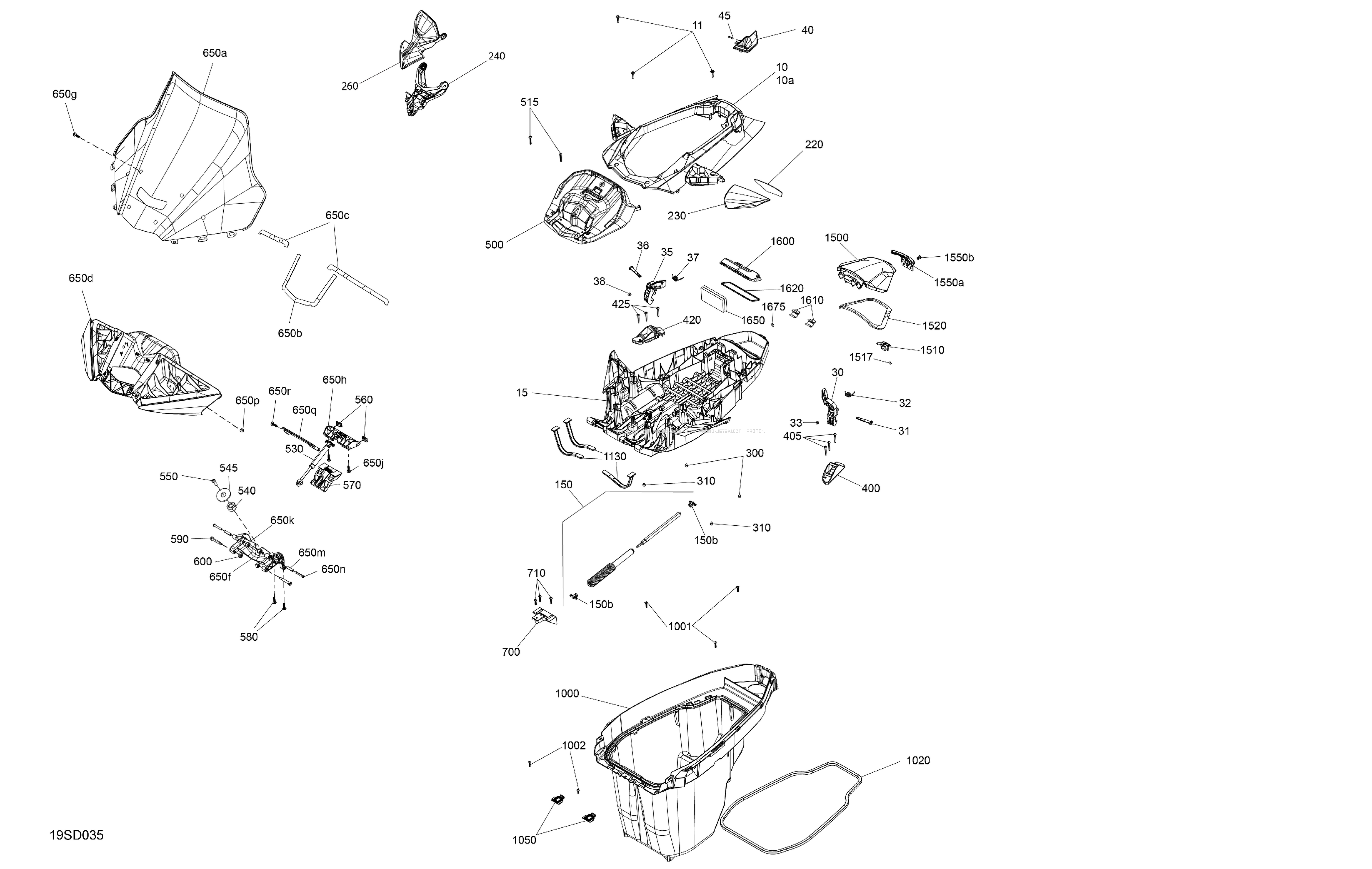 Below, find all references of original and spare parts for Body - Front Cover for your Sea-Doo EXPLORER 300 - 17RE - Iceland Grey - Audio 2024 and available at Promo-jetski.com.