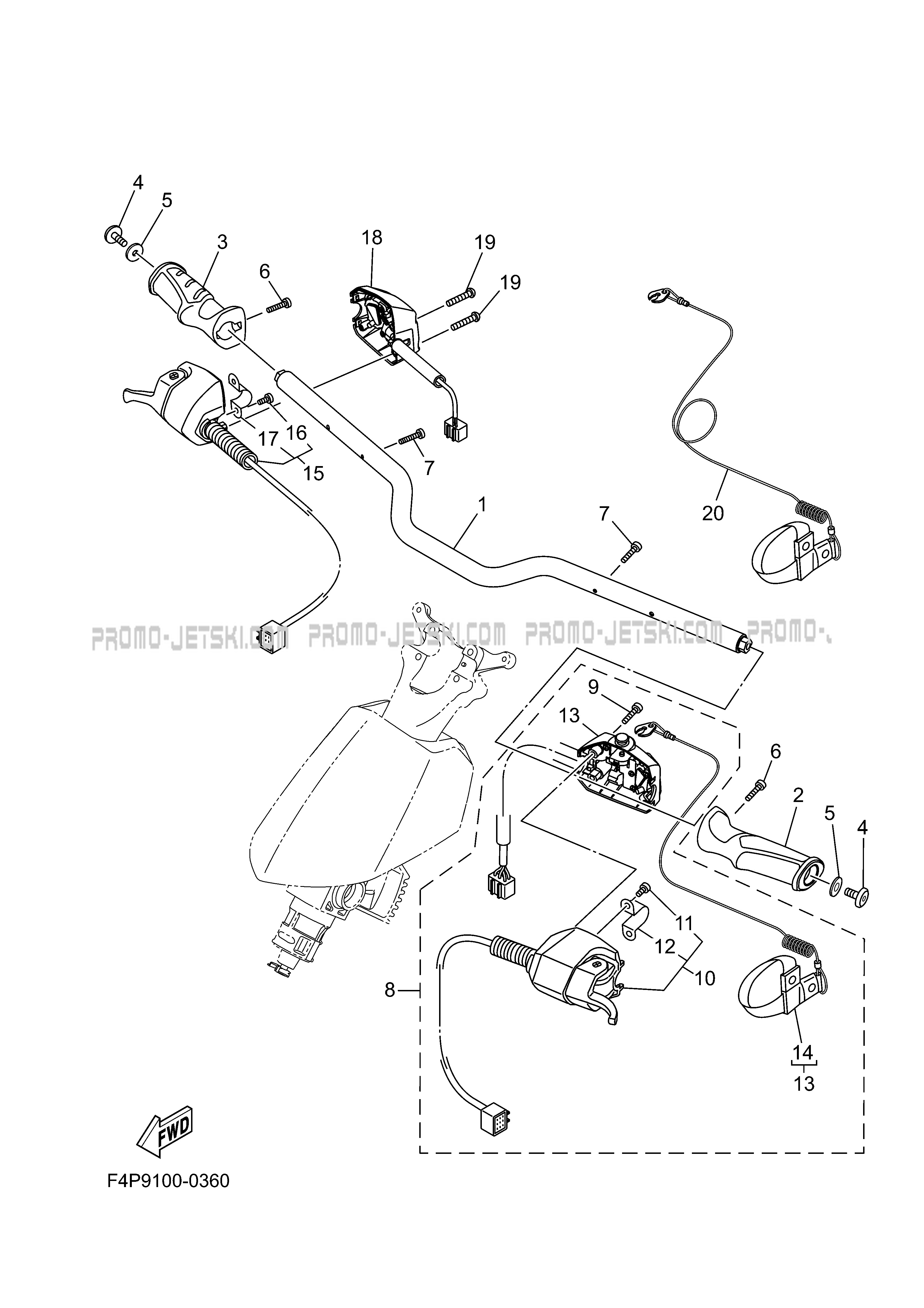 Below, find all references of original and spare parts for STEERING 1 for your Yamaha GP1800 SVHO (GP1800AB) 2025 and available at Promo-jetski.com.