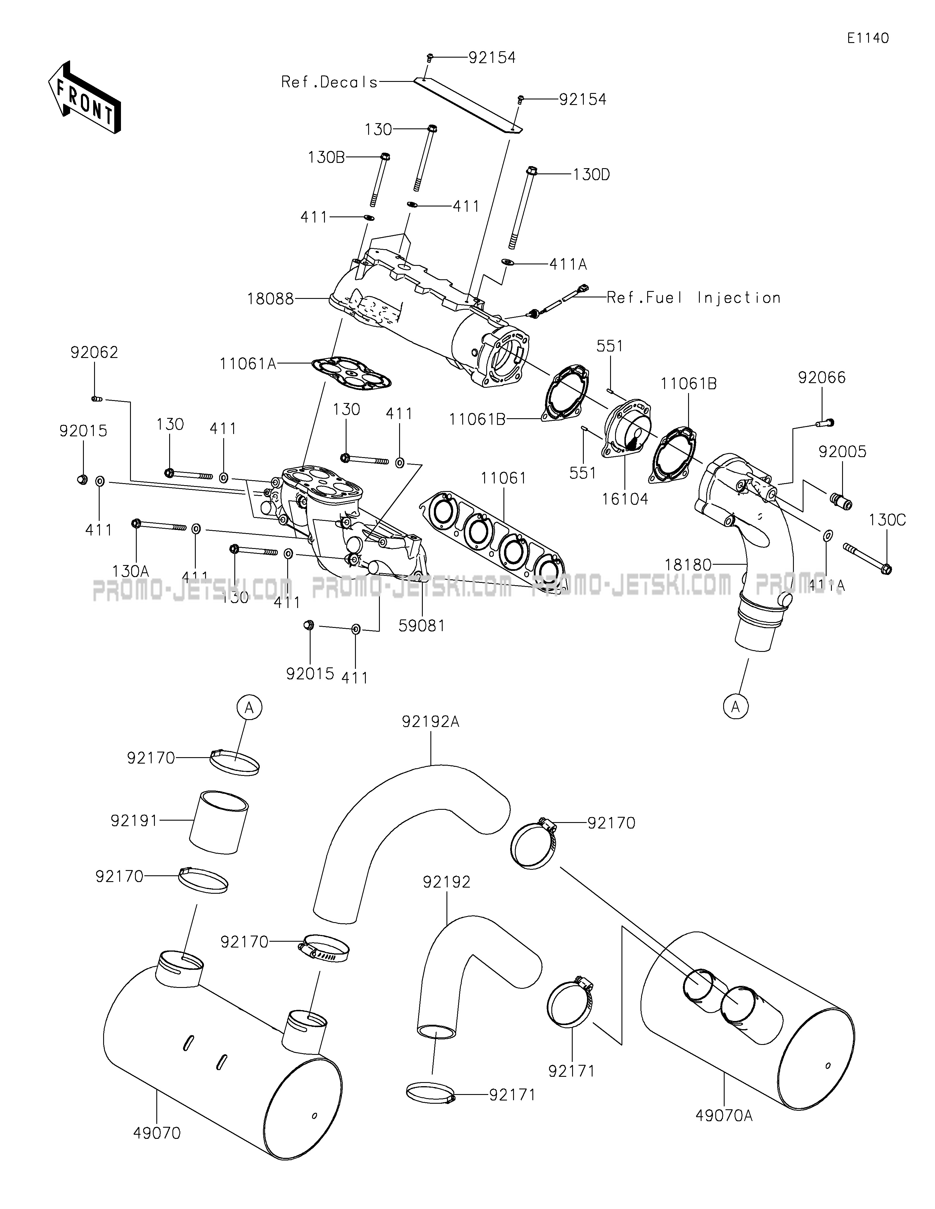 As soon as you place your order, we will send you your original or replacement references for your Muffler(s) for Ultra 310LX Kawasaki as soon as possible or we will place the order directly with Kawasaki.