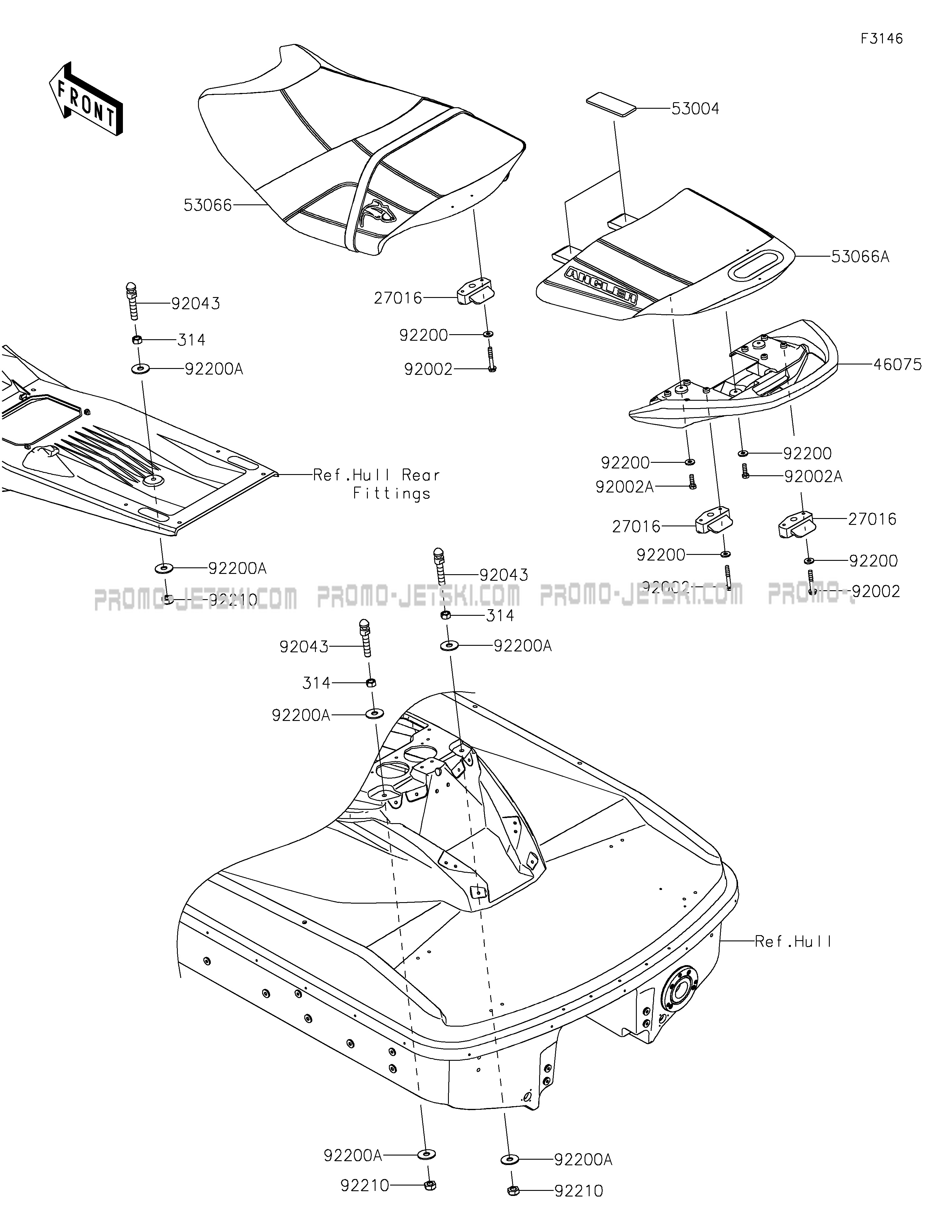Below, find all references of original and spare parts for Seat for your Kawasaki Ultra 160LX-S Angler 2025 and available at Promo-jetski.com.