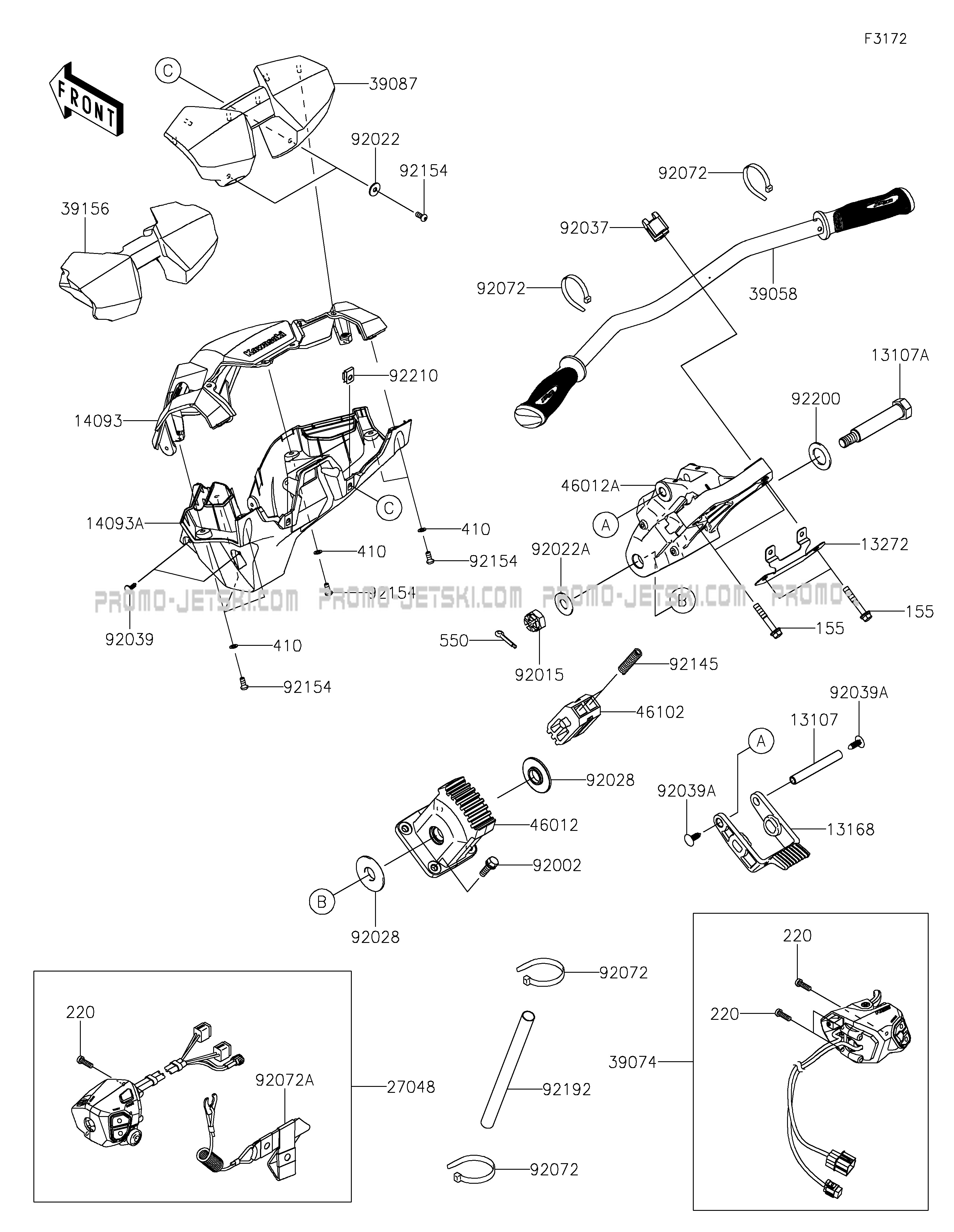 Below, find all references of original and spare parts for Handlebar for your Kawasaki Ultra 160LX-S 2025 and available at Promo-jetski.com.