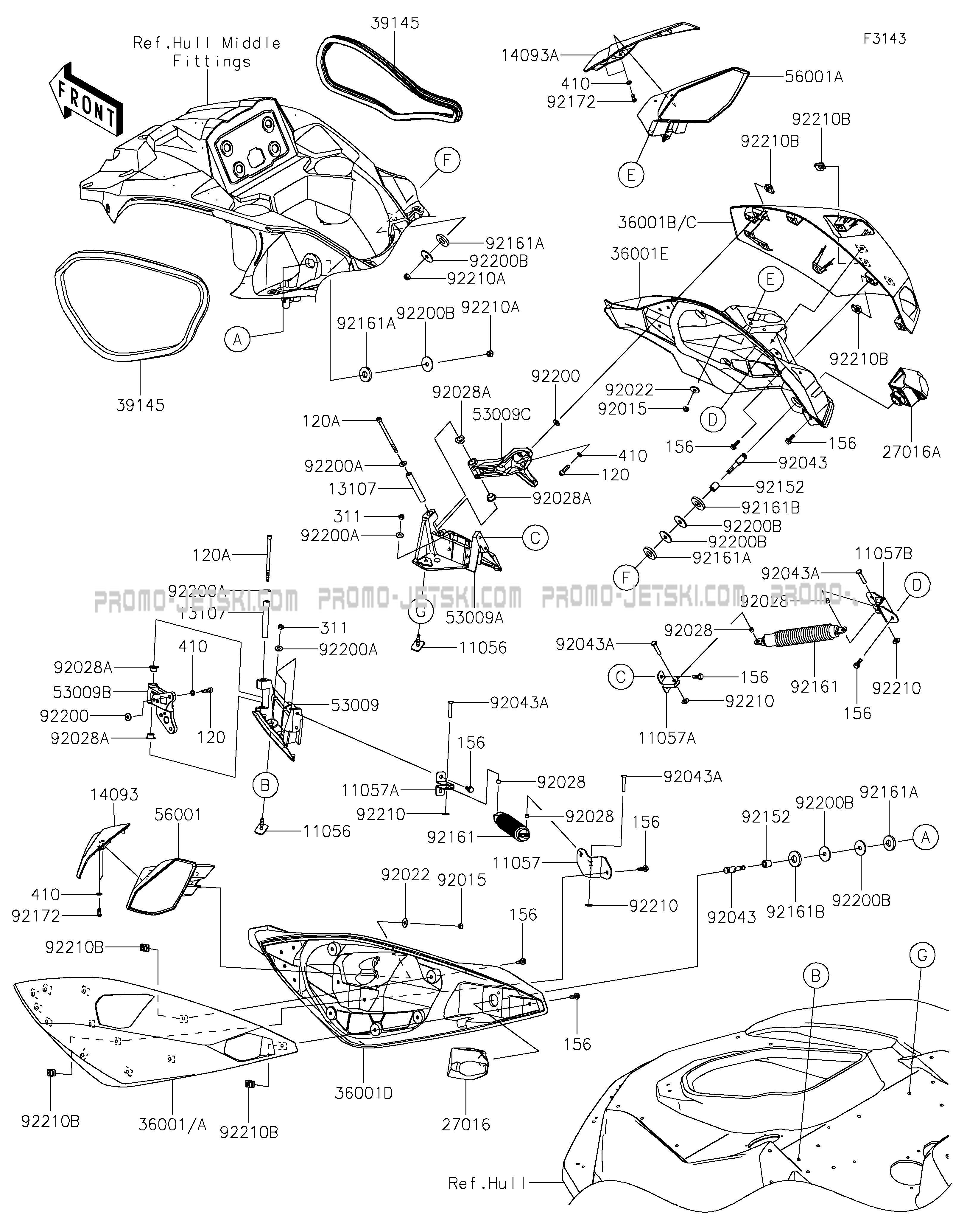 Below, find all references of original and spare parts for Hull Fittings(Side Storage) for your Kawasaki Ultra 160LX-S 2025 and available at Promo-jetski.com.