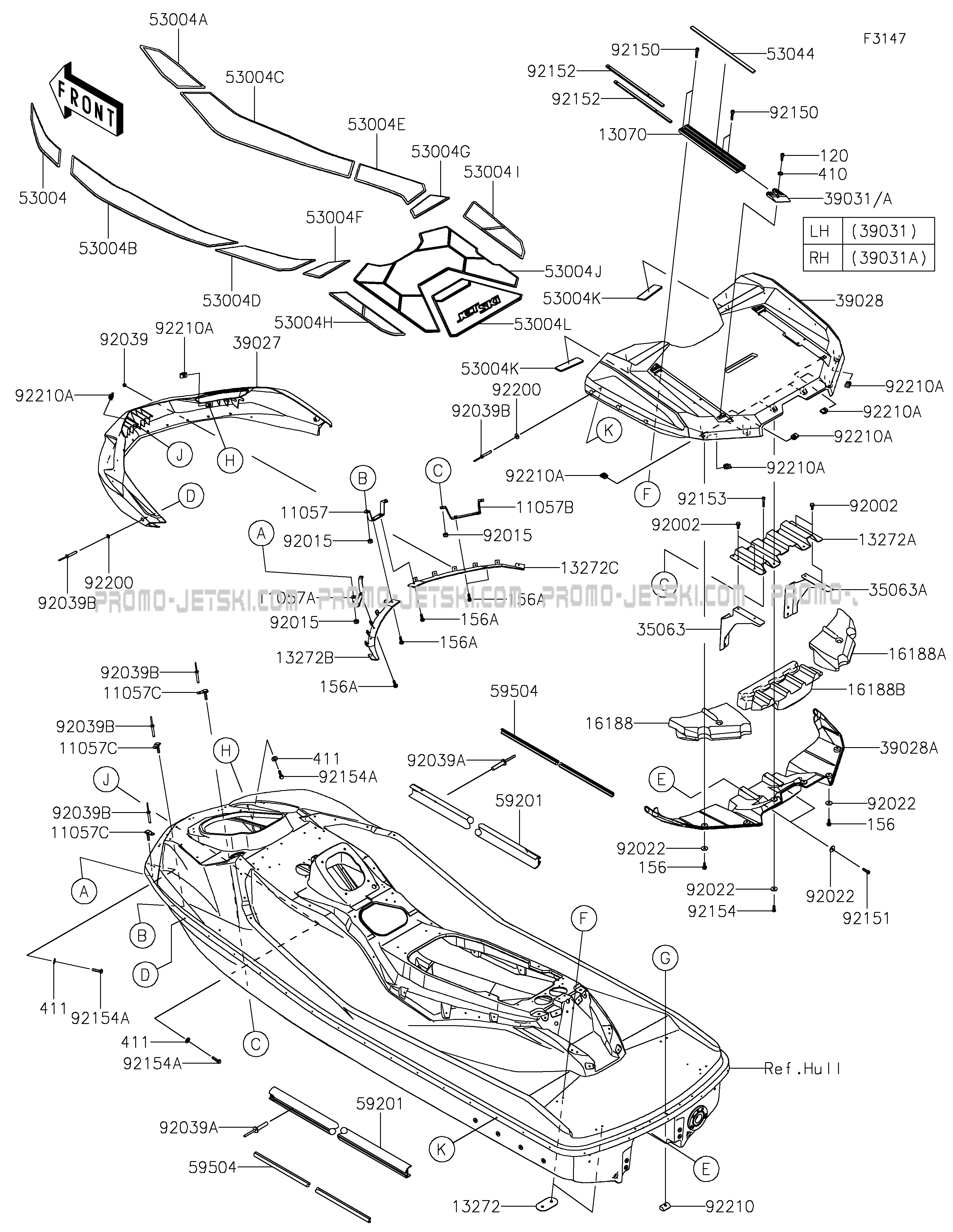Below, find all references of original and spare parts for Pads for your Kawasaki Ultra 160LX-S 2025 and available at Promo-jetski.com.
