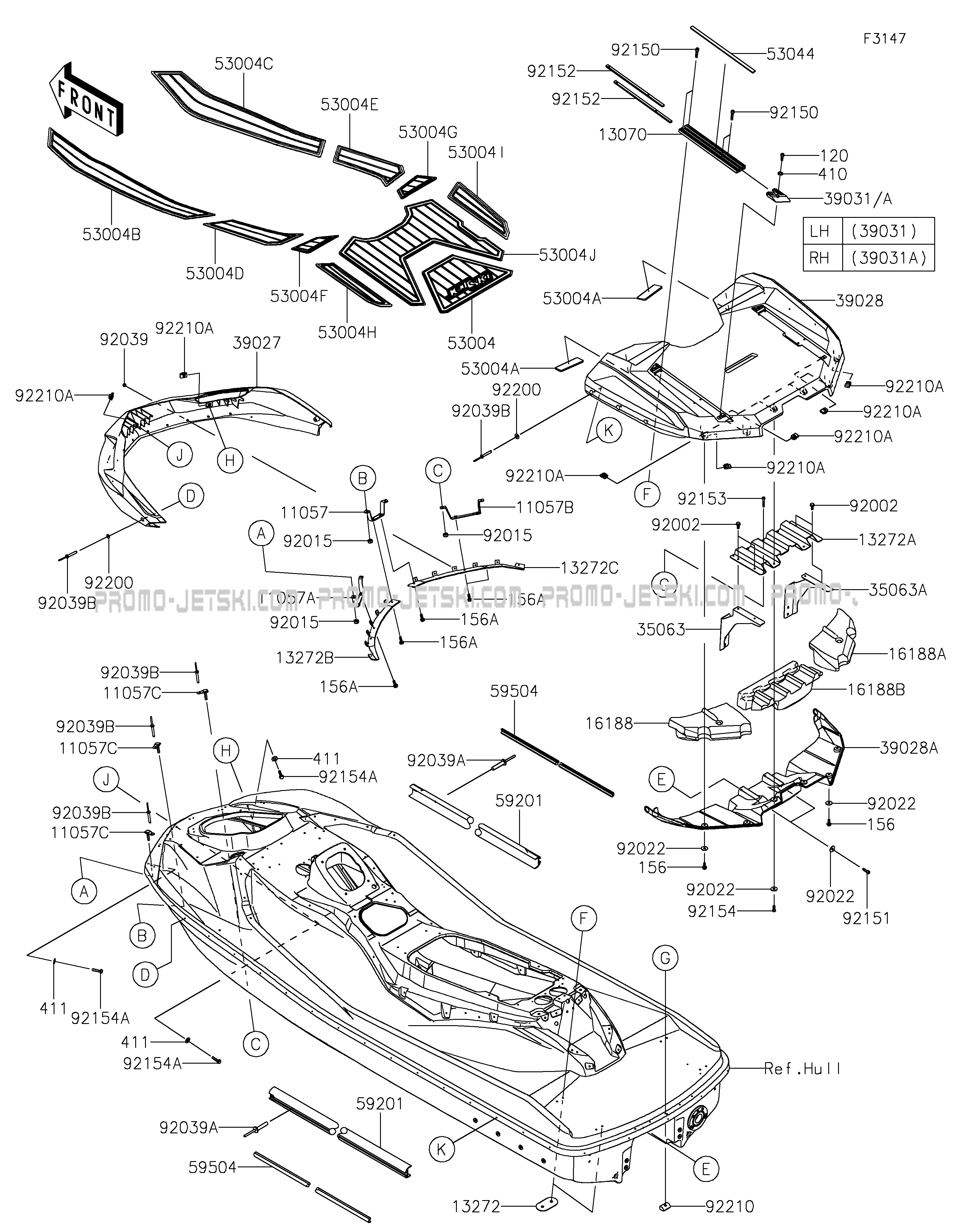 Here is the diagram showing the Pads for Kawasaki Ultra 160LX.