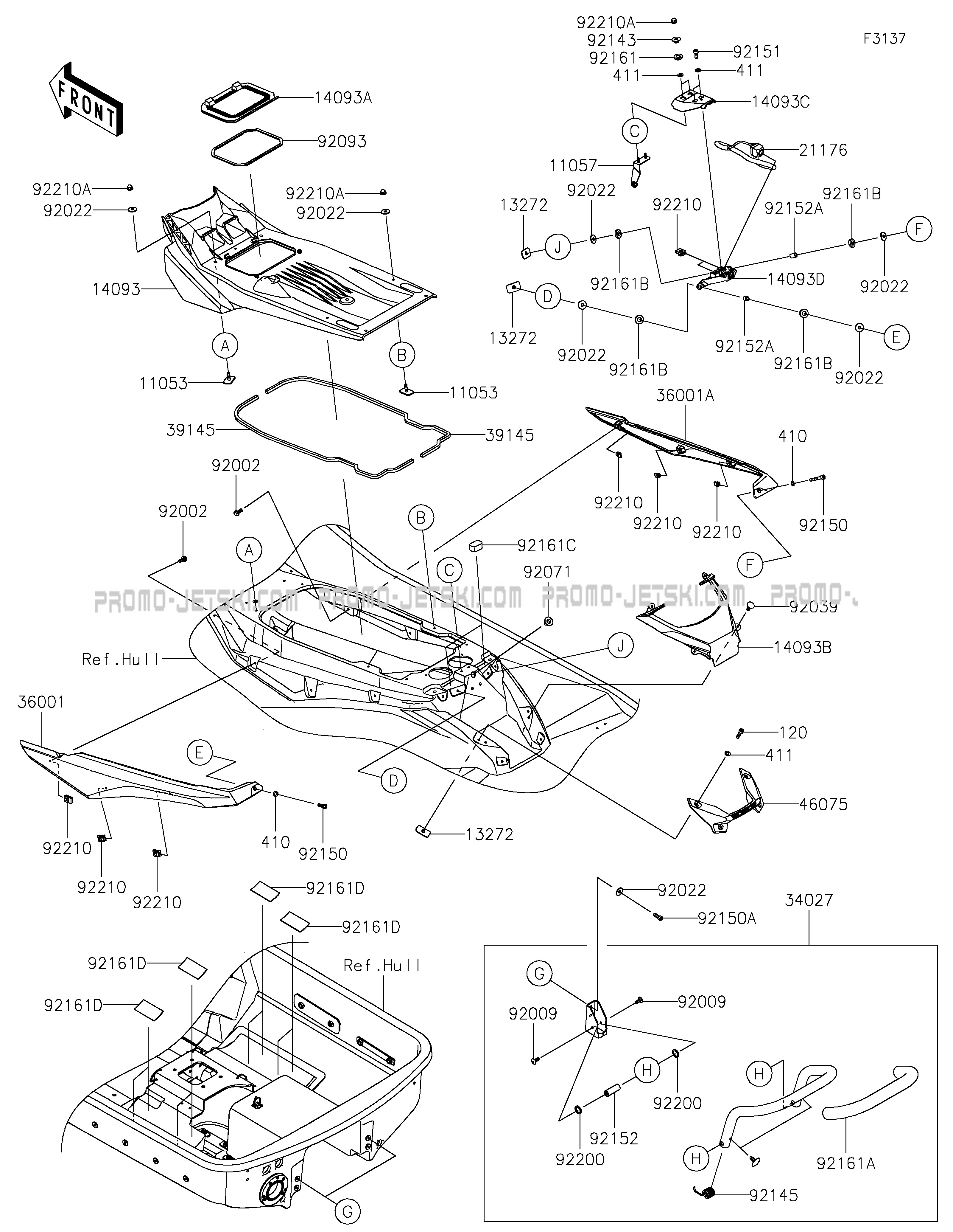 As soon as you place your order, we will send you your original or replacement references for your Hull Rear Fittings for JET SKI® ULTRA® 310LX-S Kawasaki as soon as possible or we will place the order directly with Kawasaki.