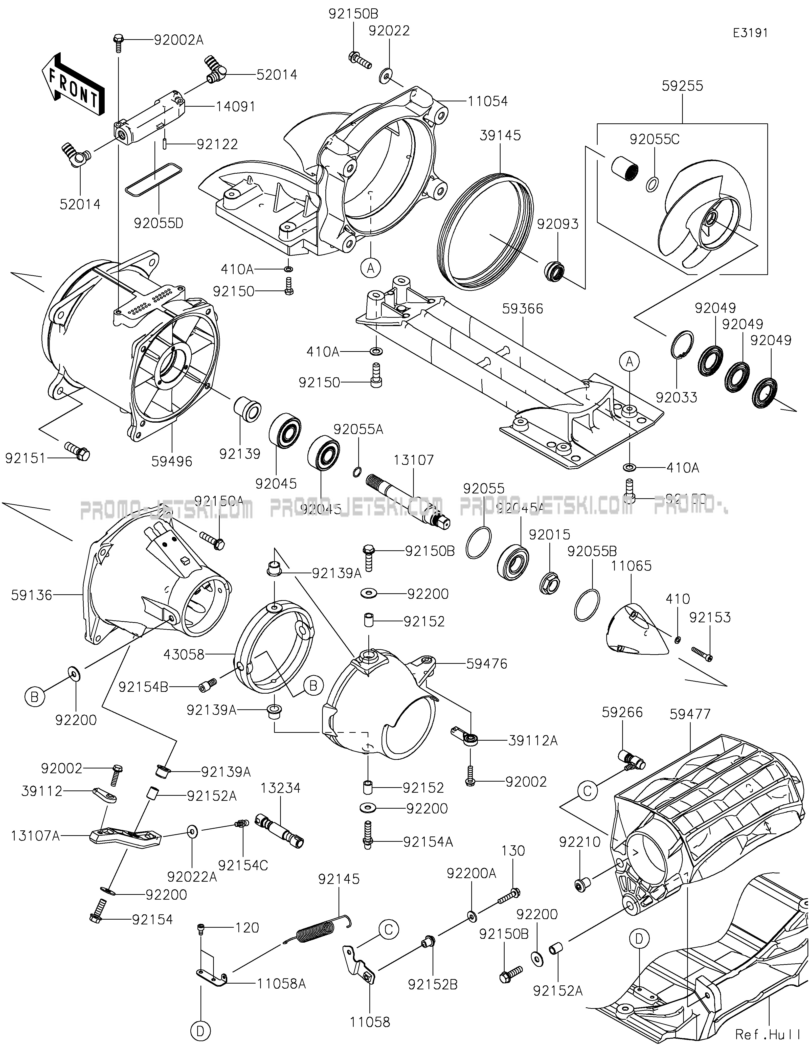 Below, find all references of original and spare parts for Jet Pump for your Kawasaki JET SKI® ULTRA® 160LX-S ANGLER 2025 and available at Promo-jetski.com.