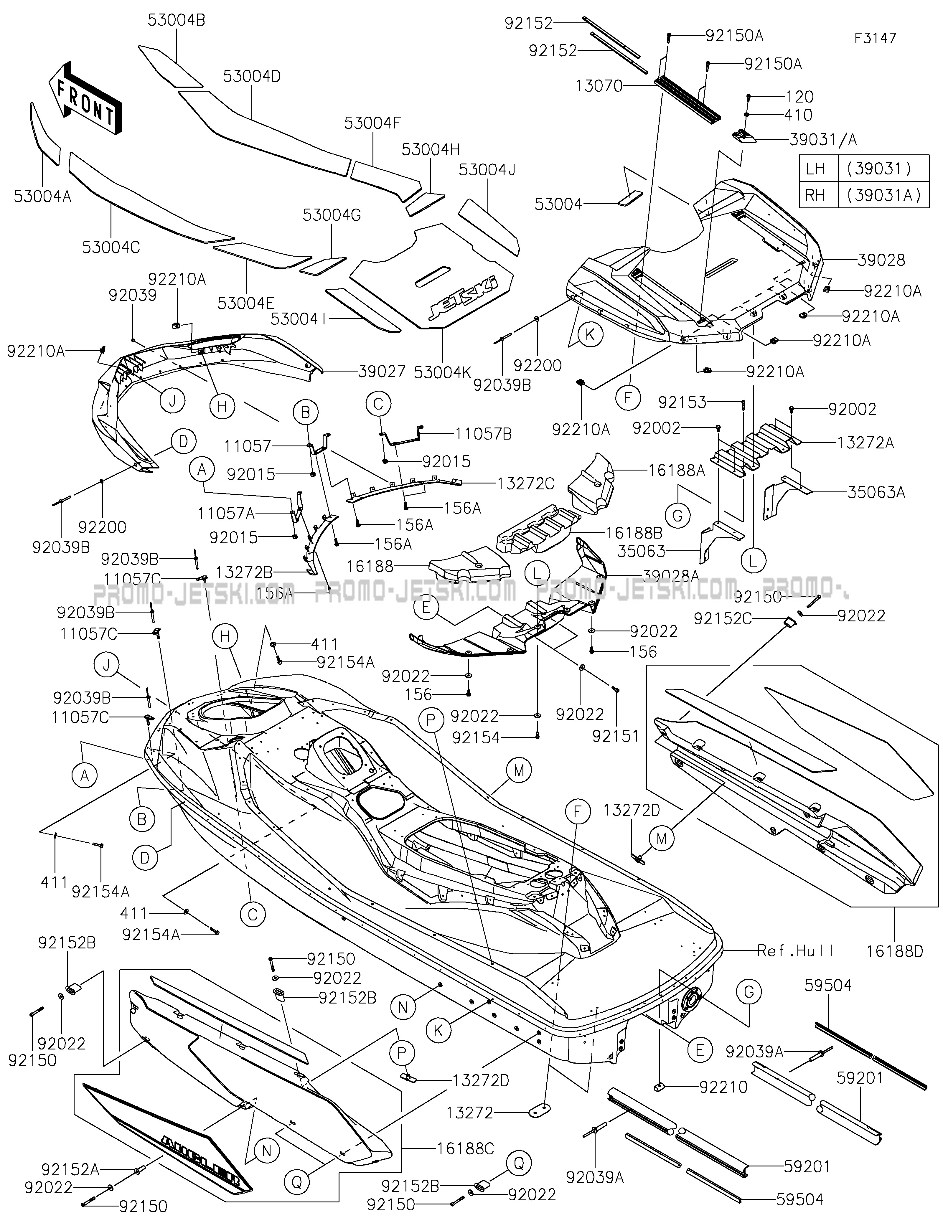 Below, find all references of original and spare parts for Pads for your Kawasaki JET SKI® ULTRA® 160LX-S ANGLER 2025 and available at Promo-jetski.com.
