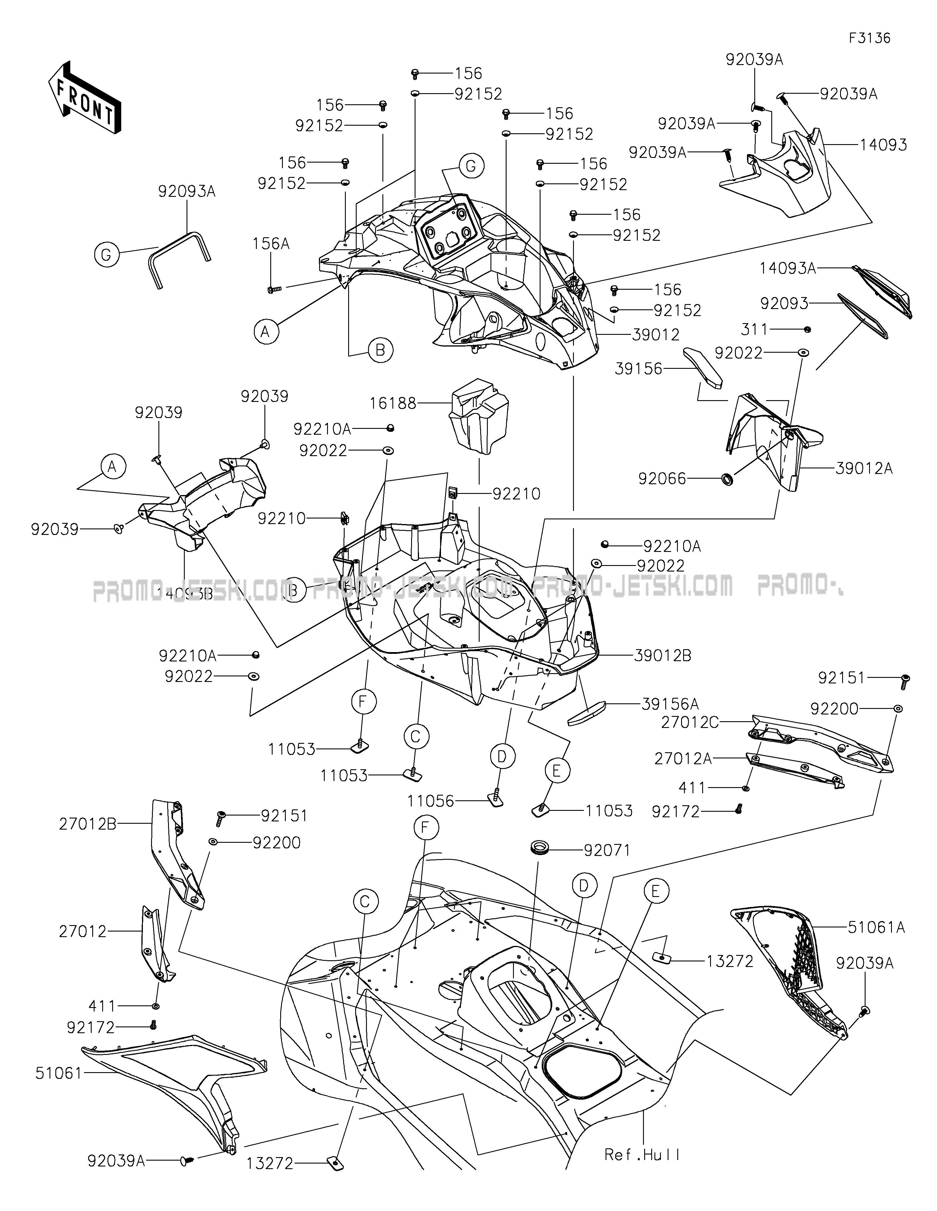 Below, find all references of original and spare parts for Hull Middle Fittings for your Kawasaki JET SKI® ULTRA® 160LX-S 2025 and available at Promo-jetski.com.