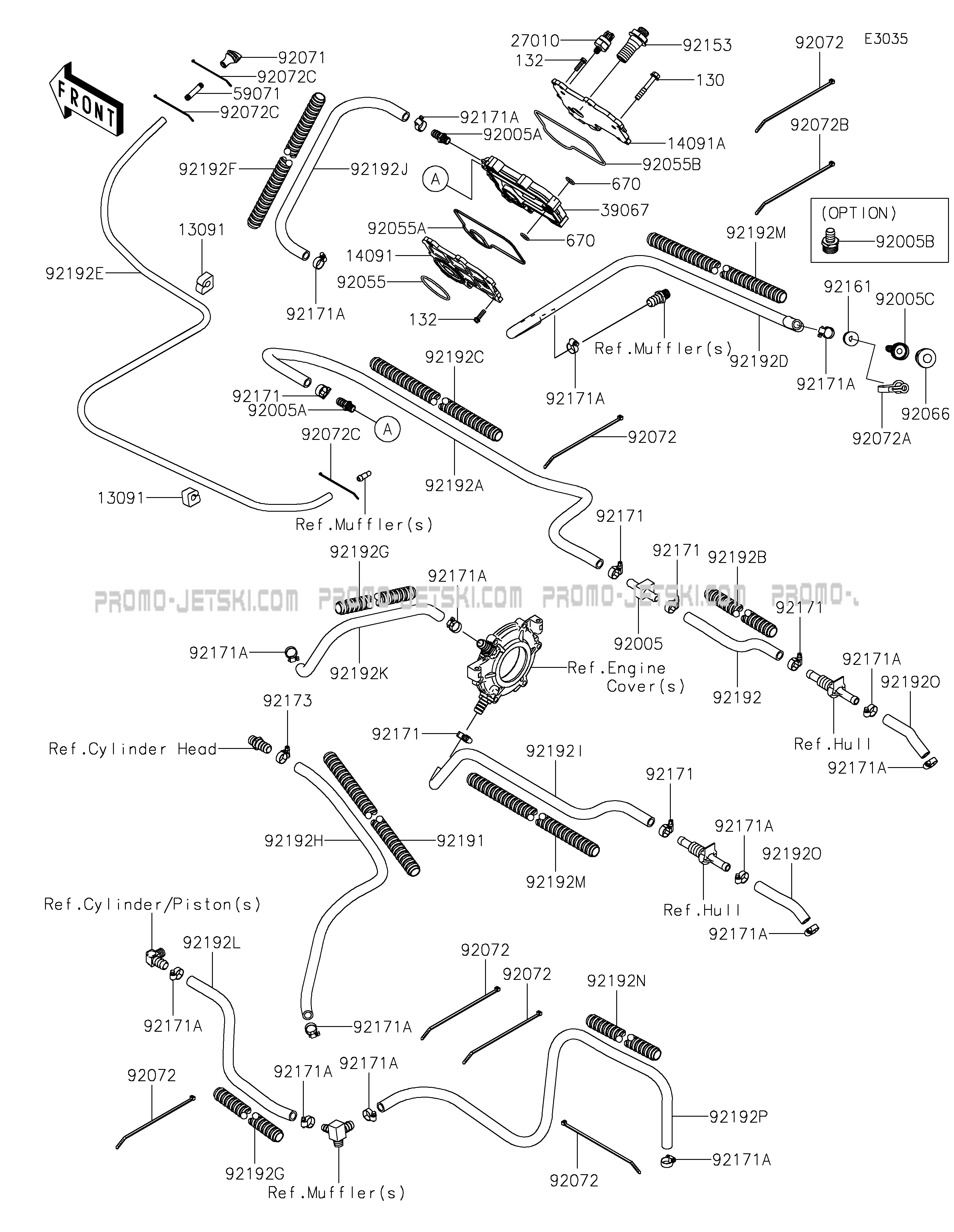 As soon as you place your order, we will send you your original or replacement references for your Cooling(ARSNN) for JET SKI® ULTRA® 160LX Kawasaki as soon as possible or we will place the order directly with Kawasaki.