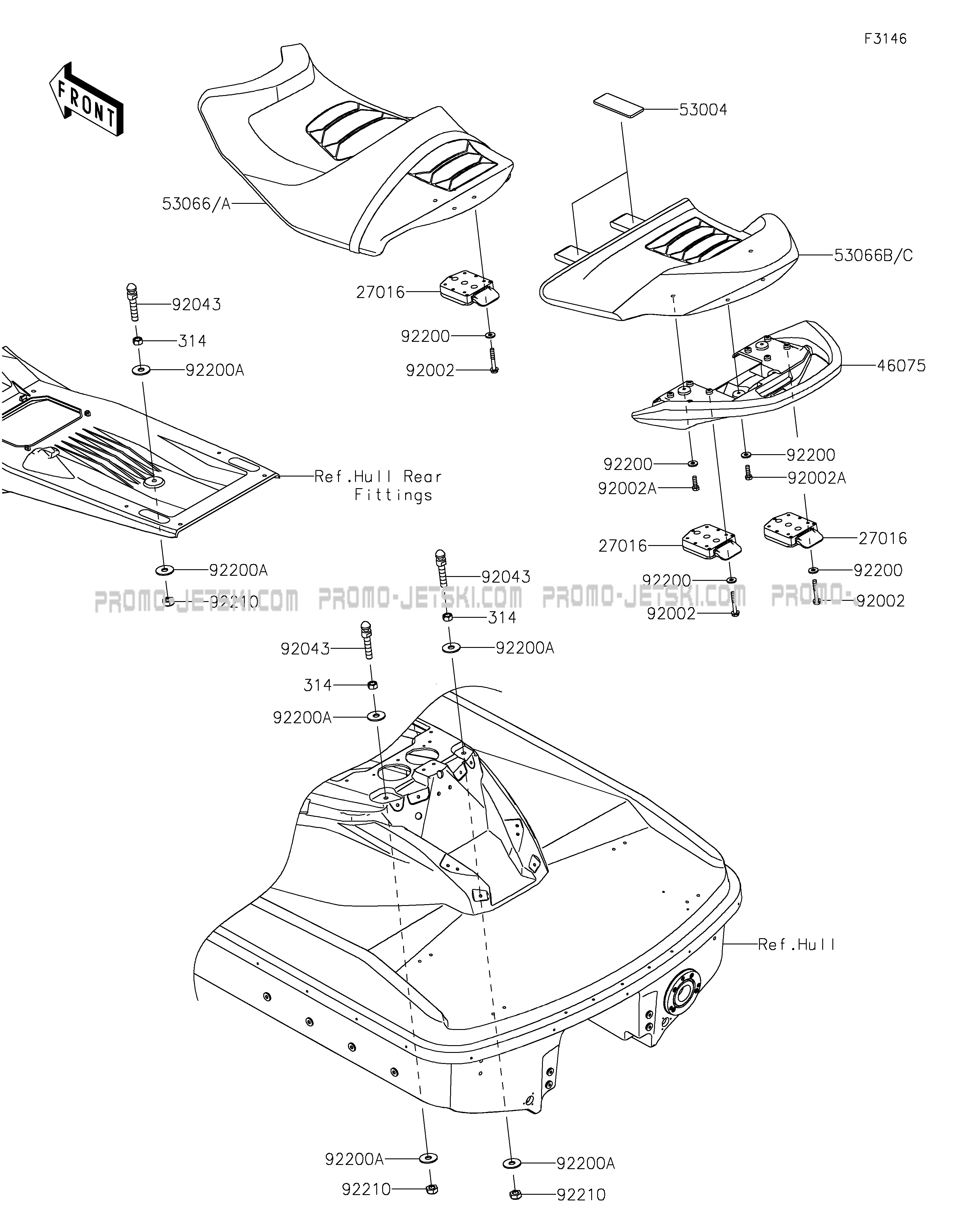 Below, find all references of original and spare parts for Seat for your Kawasaki JET SKI® ULTRA® 160LX 2025 and available at Promo-jetski.com.