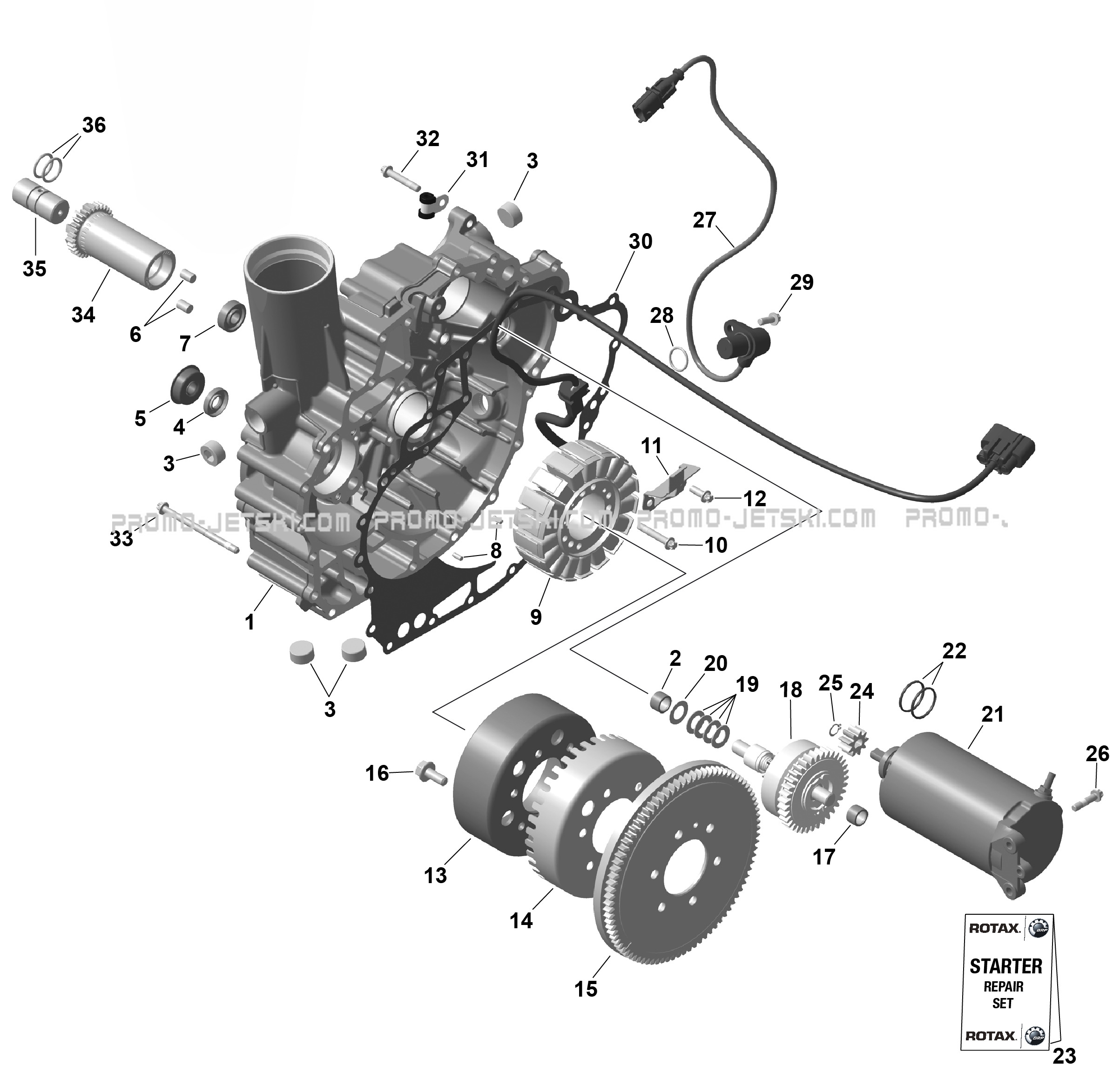Below, find all references of original and spare parts for ROTAX - Magneto and Electric Starter for your Sea-Doo GTI - 130 - SE - 29SB - Purple Potion - Audio 2025 and available at Promo-jetski.com.