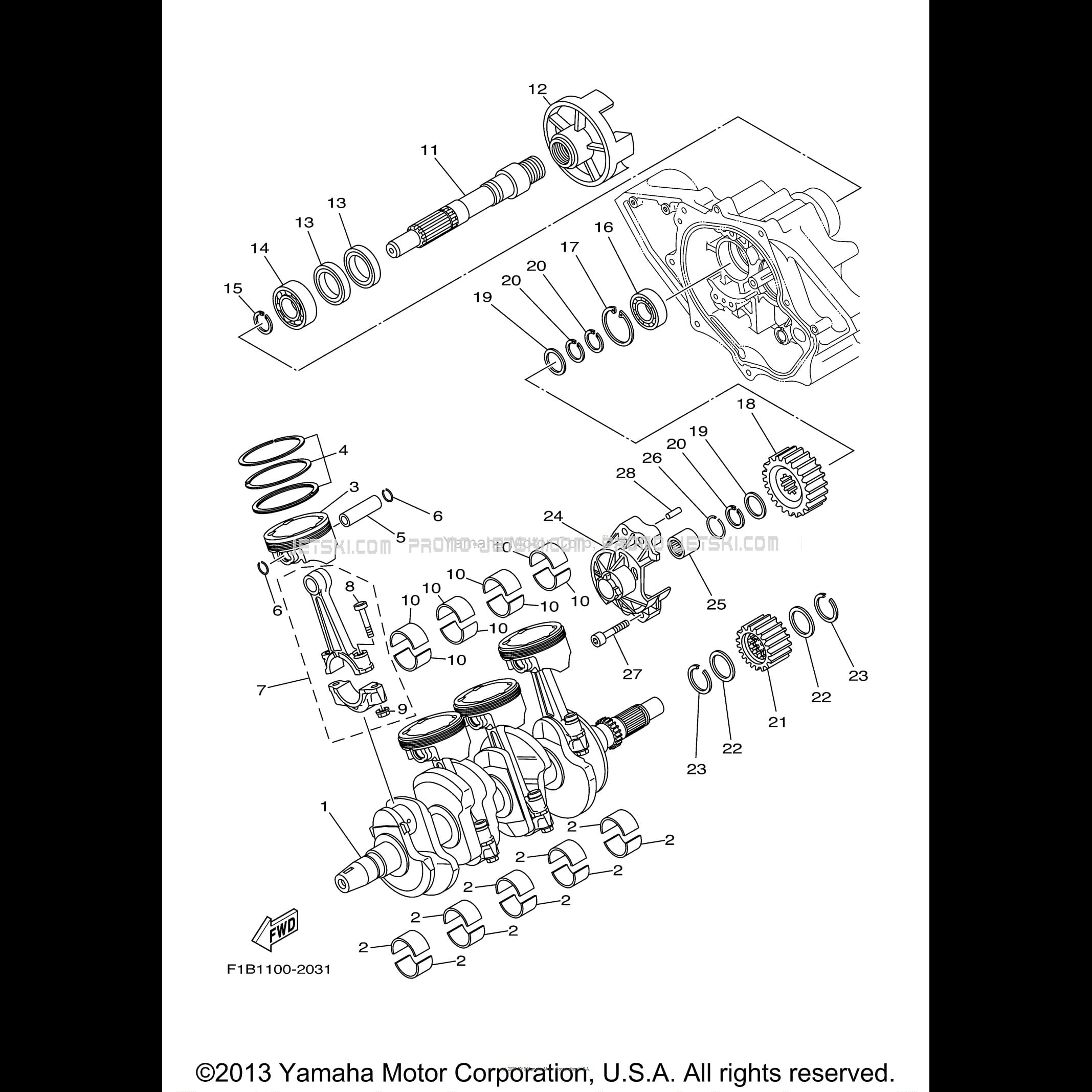 Below, find all references of original and spare parts for CRANKSHAFT PISTON for your Yamaha FX140 CRUISER - FX1000AB - 2003 2003 WaveRunner and available at Promo-jetski.com.