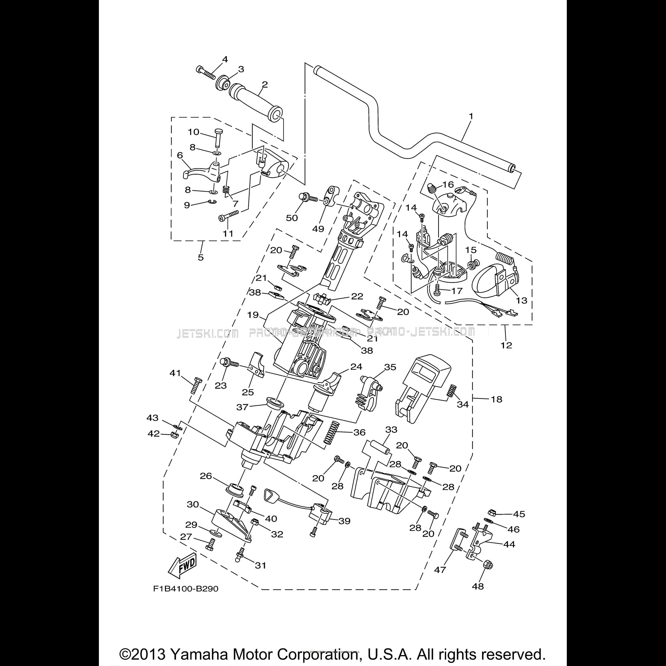 Below, find all references of original and spare parts for STEERING 1 for your Yamaha FX140 CRUISER - FX1000AB - 2003 2003 WaveRunner and available at Promo-jetski.com.