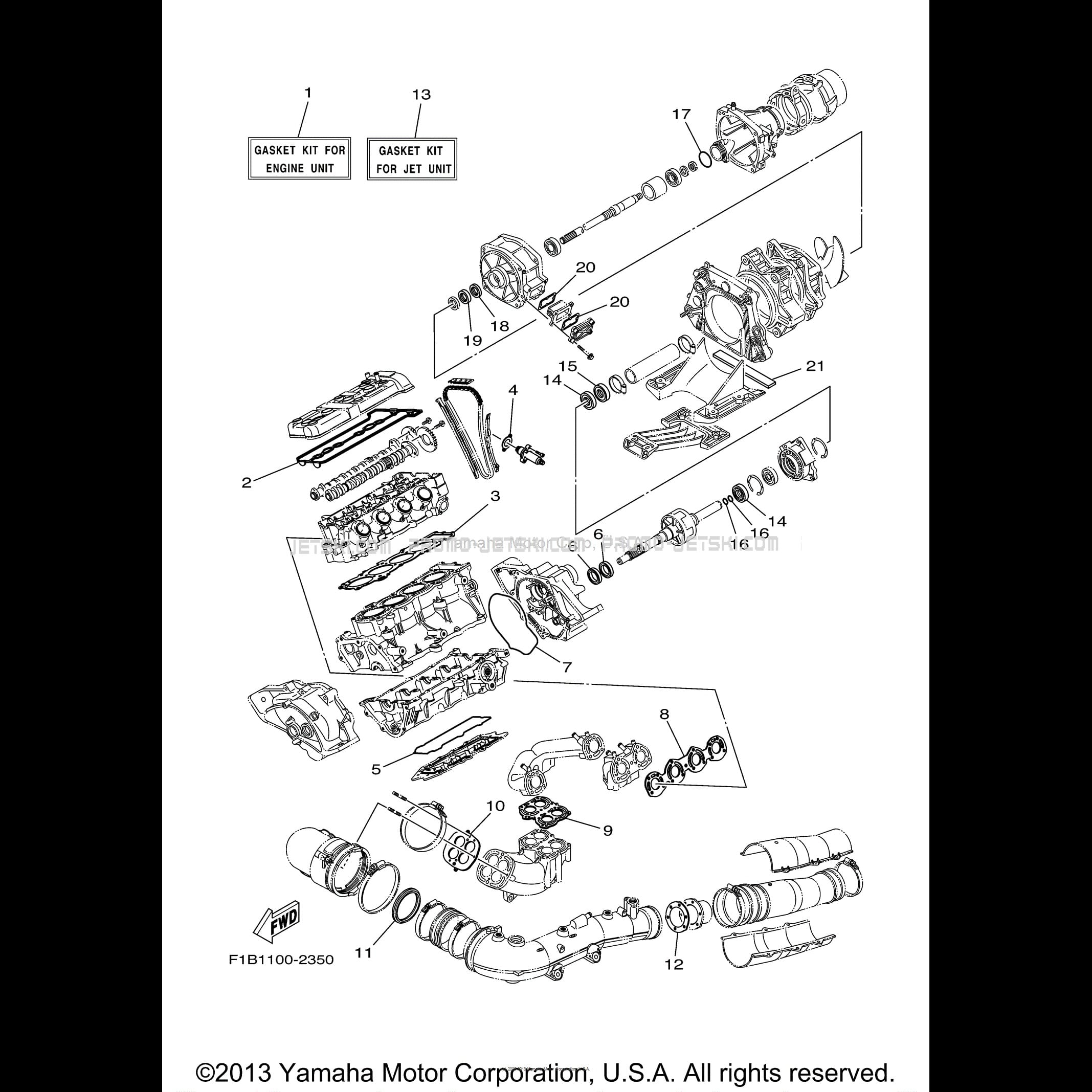 Here is the diagram showing the REPAIR KIT 1 for Yamaha FX140 CRUISER - FX1000ACB - 2003.