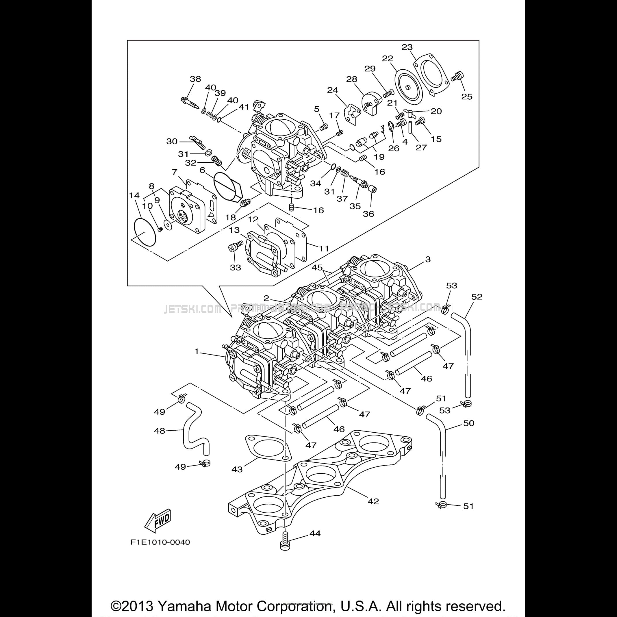 Below, find all references of original and spare parts for CARBURETOR for your Yamaha SUV1200 - SV1200B - 2003 2003 WaveRunner and available at Promo-jetski.com.
