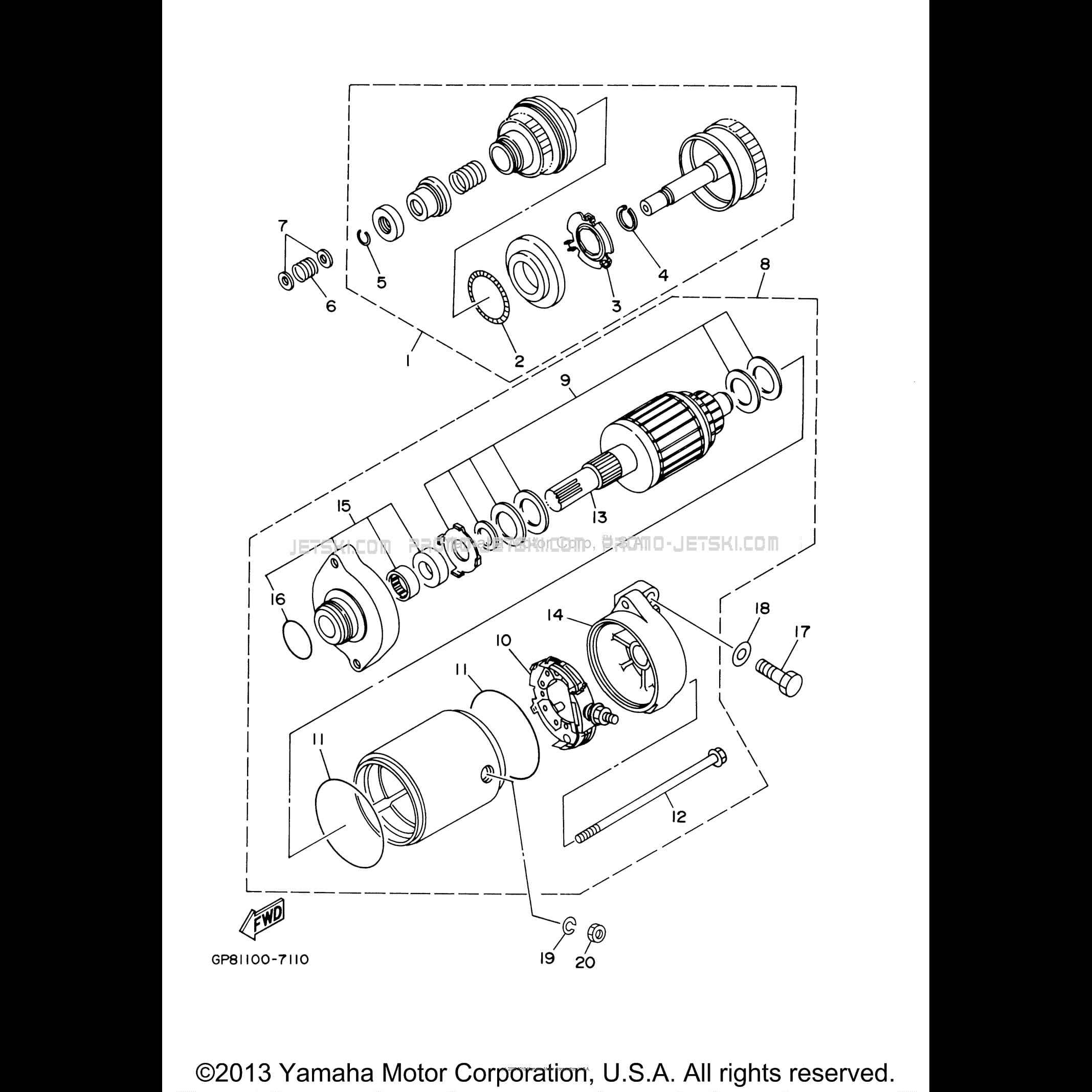 Below, find all references of original and spare parts for STARTING MOTOR for your Yamaha SUV1200 - SV1200B - 2003 2003 WaveRunner and available at Promo-jetski.com.