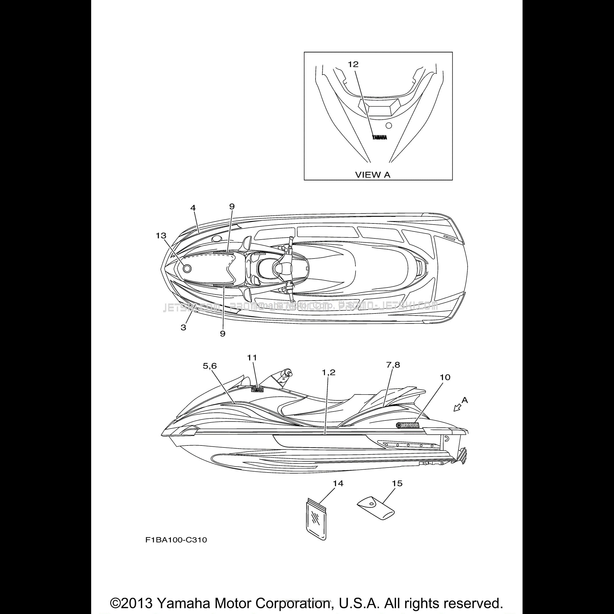 Below, find all references of original and spare parts for GRAPHICS for your Yamaha FX Cruiser (Cali.) - FX1000ACC - 2004 2004 WaveRunner and available at Promo-jetski.com.